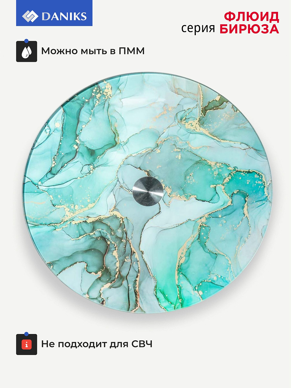 Стеклянное блюдо Daniks Флюид диаметром 30 см — оптимальный выбор, если вы ищете, какое блюдо выбрать для сервировки тортов и закусок. Бирюзовый цвет и мраморный рисунок делают его акцентом на любом столе, а вращающаяся подставка обеспечивает максимальный комфорт при раздаче угощений. Как использовать блюдо с вращающейся подставкой? Просто размещайте угощения по кругу, гости смогут легко взять кусочек, не двигая всю конструкцию.