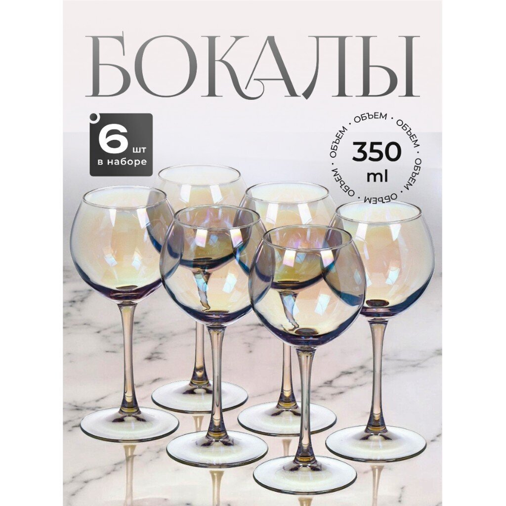 Бокалы для вина Glasstar Васильковый 9, 350 мл, 6 шт — идеальный подарок и стиль для сервировки стола. Перламутровое стекло, премиум-упаковка, выгодная цена.