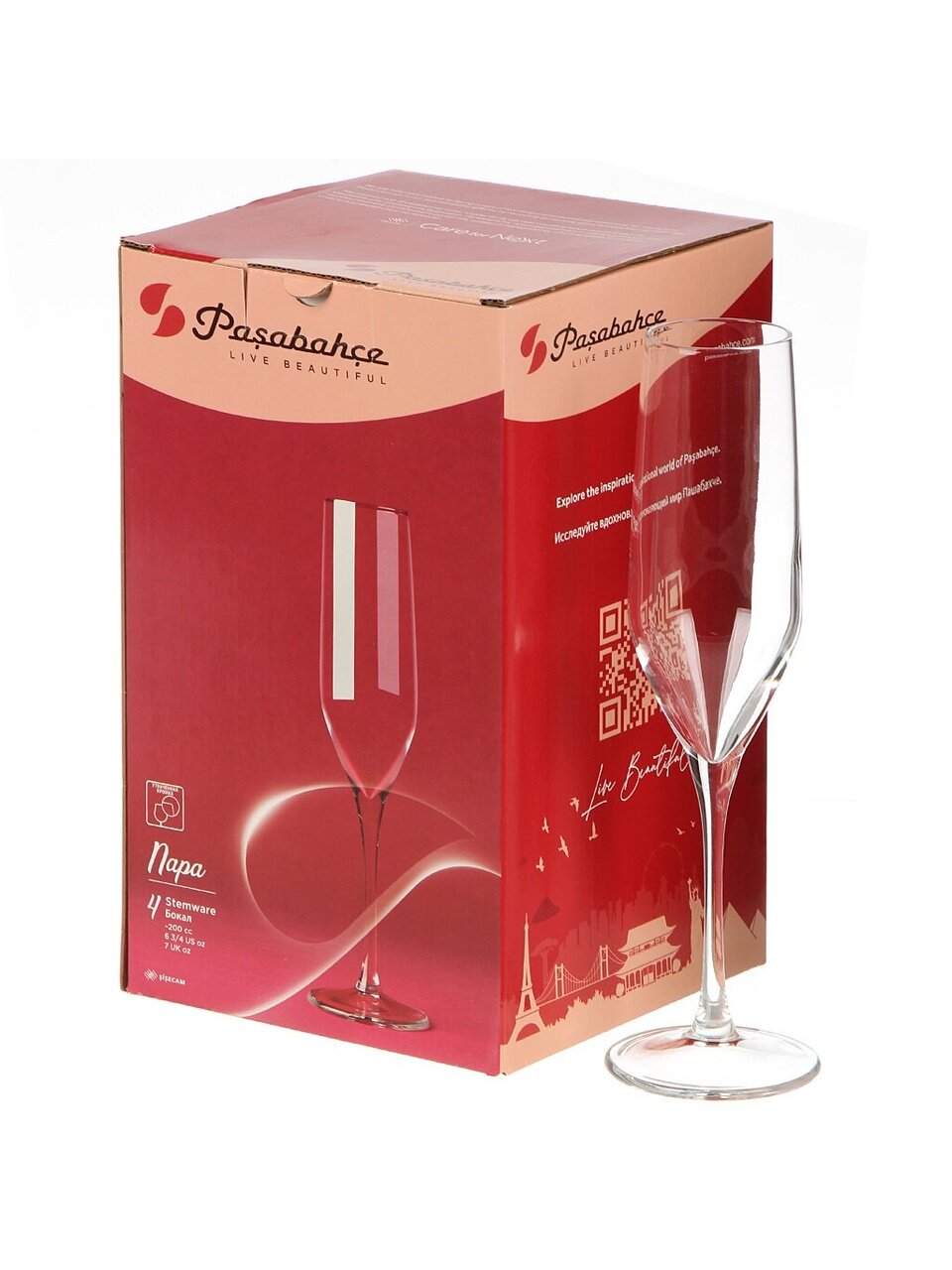 Бокалы для шампанского Pasabahce Napa 200 мл (4 шт): элегантная сервировка, прочное стекло, выгодный набор для праздников и подарков.