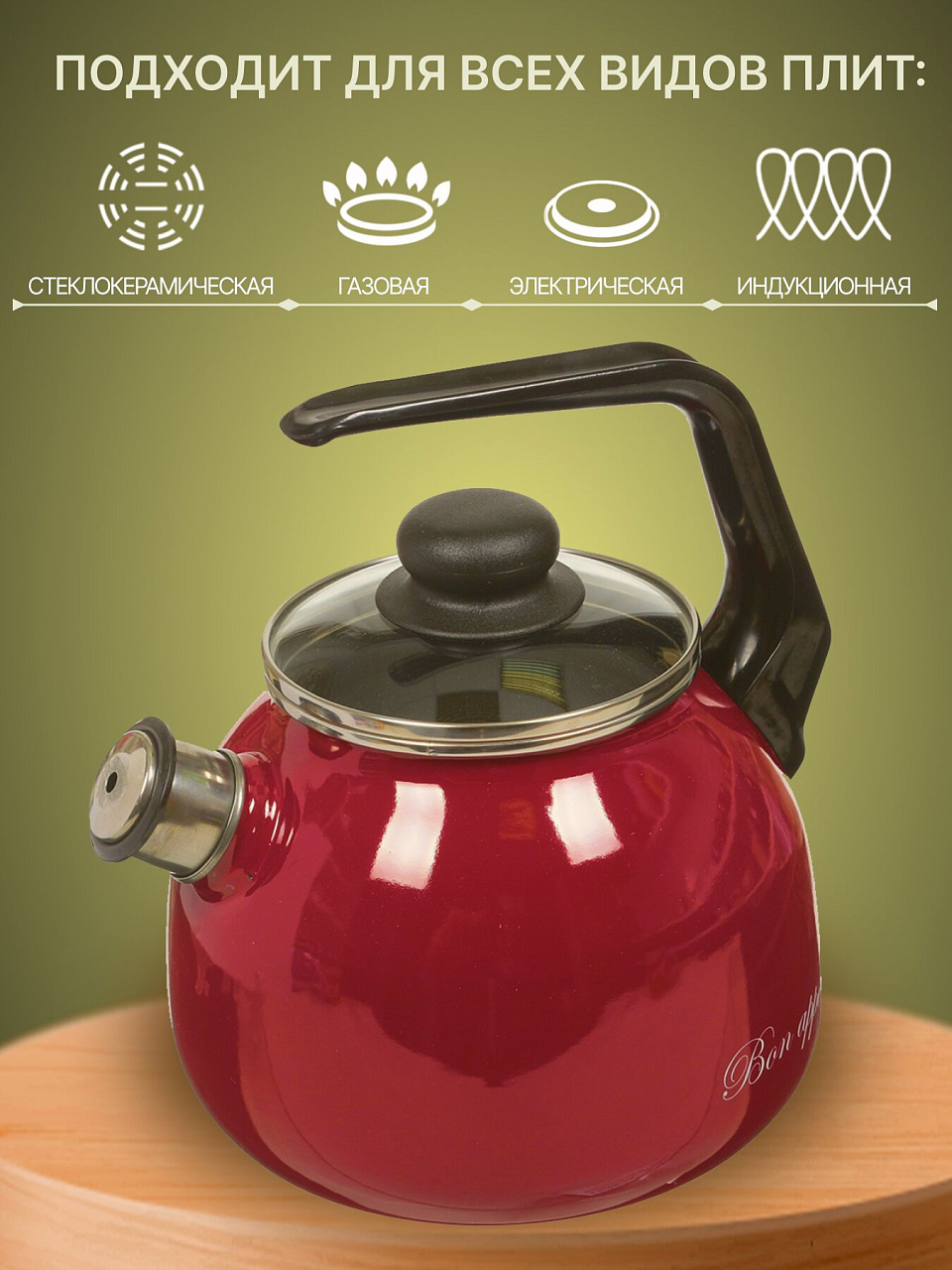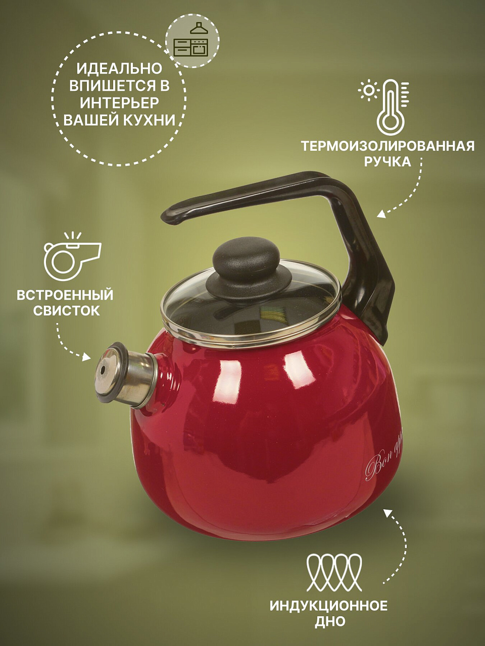 Чайник Vitross Bon Appetit 3 л для индукции — стальной корпус, эмаль, термоизоляция, свисток. Идеален для дома и дачи — купить выгодно!