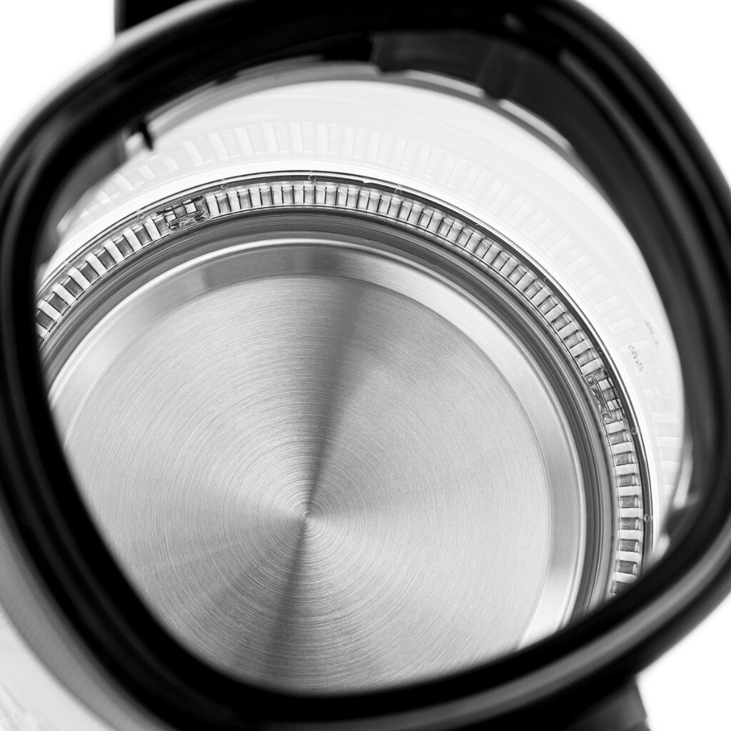 - Корпус из термостойкого стекла и пластика, объем 1.7 л — оптимален для семьи или офиса.