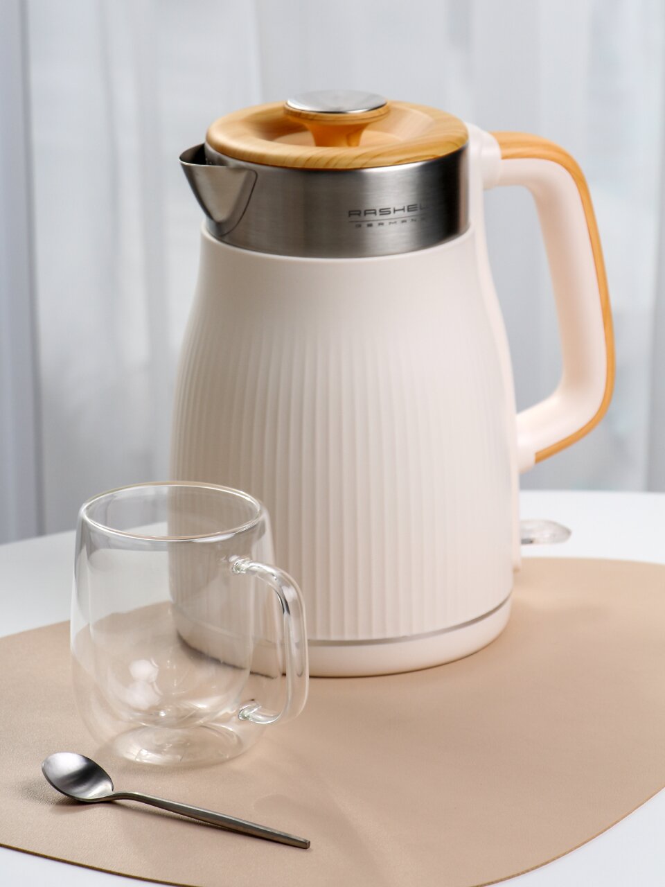 Многие спрашивают: «Подходит ли этот чайник для частого использования?» — корпус из нержавеющей стали и прочного пластика обеспечивает долгий срок службы даже при ежедневном кипячении. В отличие от моделей с открытой спиралью, здесь вода не контактирует с нагревателем, что повышает безопасность и снижает образование накипи. Если вы выбираете, какой чайник купить недорого для дачи или в подарок, обратите внимание на эргономичный дизайн RasheL: он компактен, удобен в использовании и легко впишется в интерьер любой кухни.