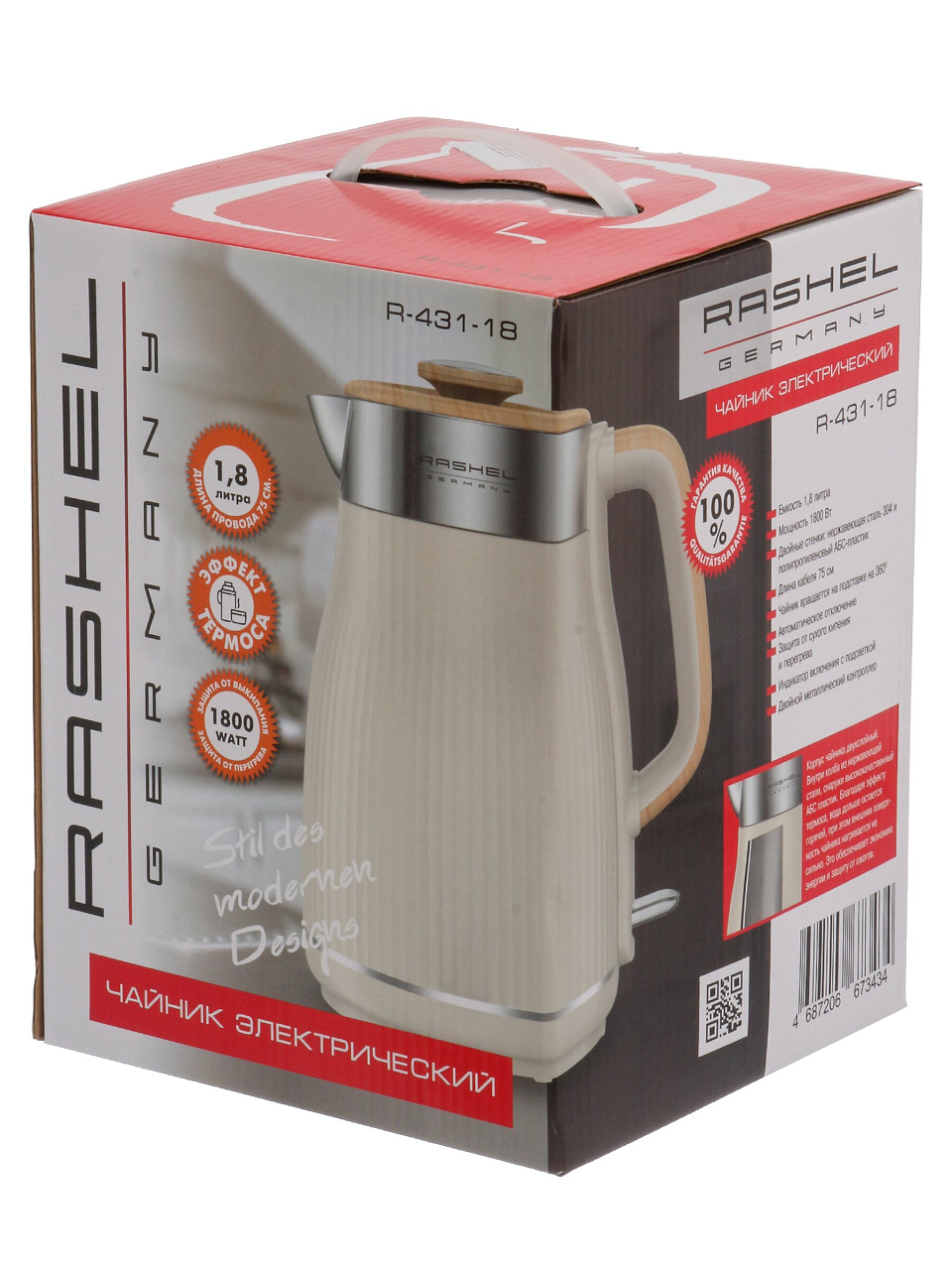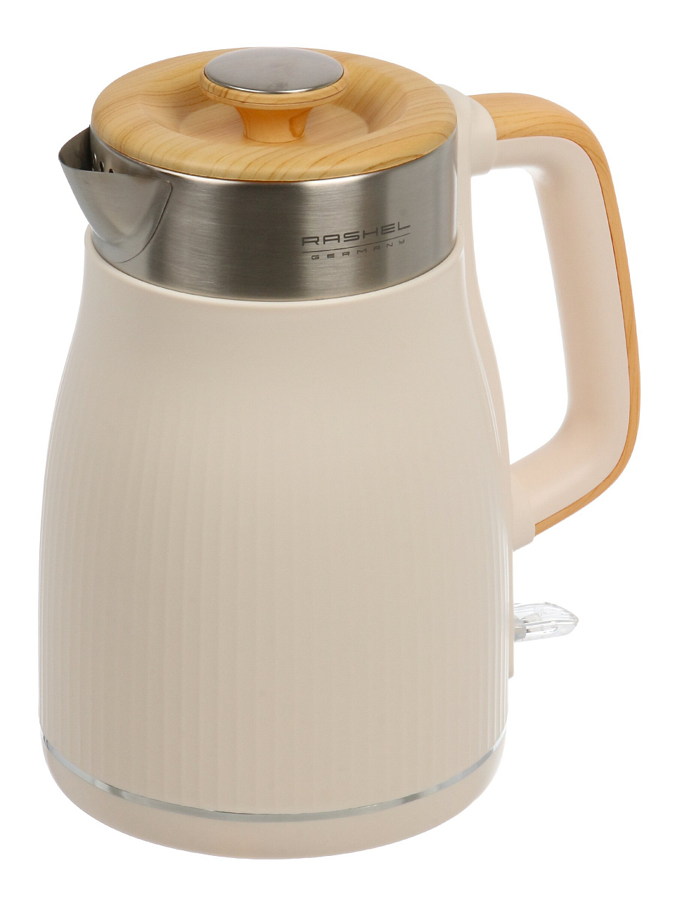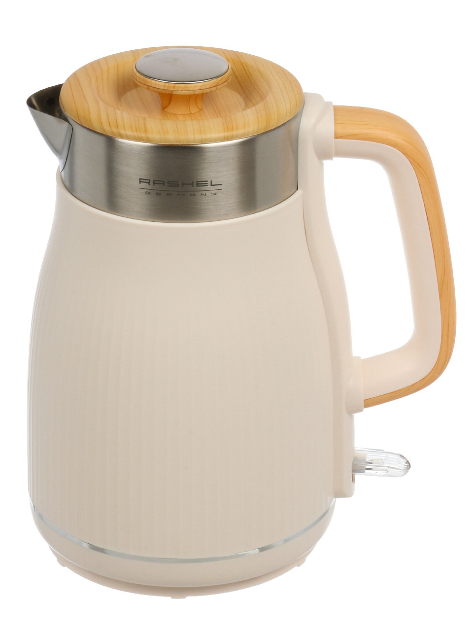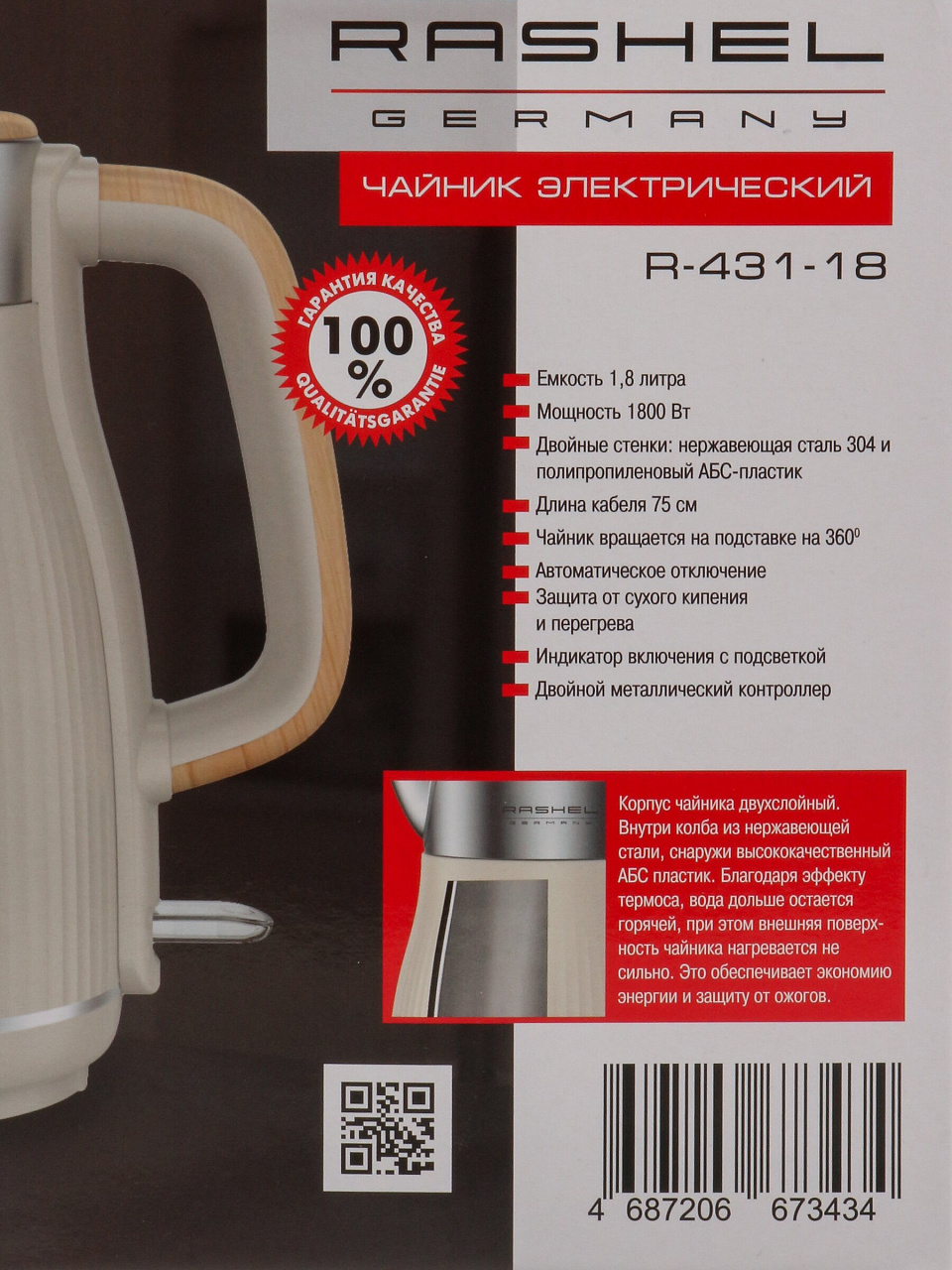 Электрический чайник RasheL R-431-18 — 1.8 л, 1800 Вт, кремовый корпус из нержавеющей стали. Быстрое кипячение, стиль и надёжность для дома и дачи.