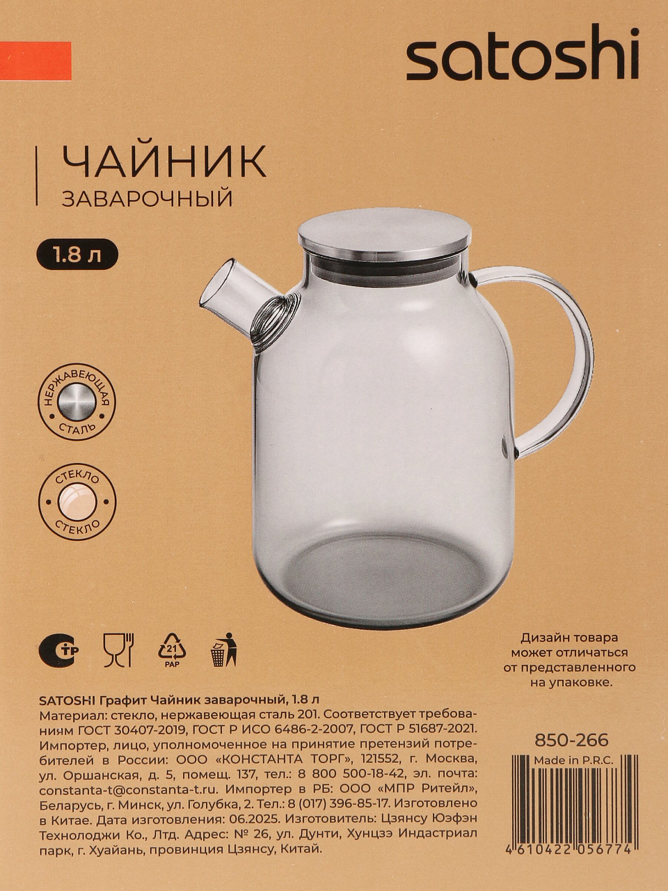 Вы можете приобрести «Чайник заварочный стекло, 1.8 л, с ситечком, Satoshi, Графит, 850-266» и другие товары в нашем интернет-магазине в Коврове по низким ценам и с бесплатным самовывозом.