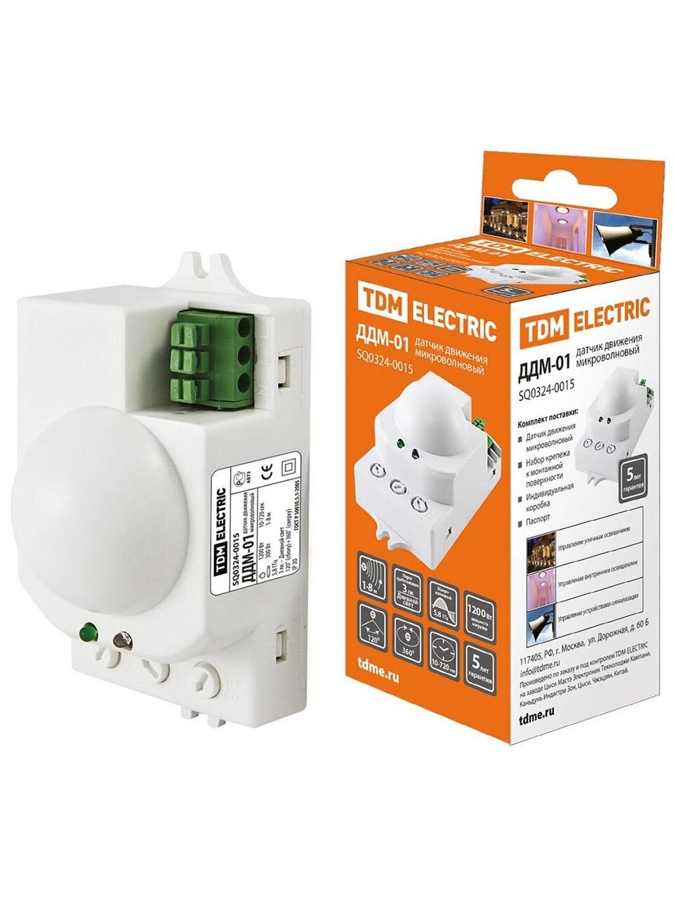 Датчик ДДМ-01 предназначен для автоматического включения и отключения нагрузки в заданном интервале времени при появлении движущихся объектов в зоне обнаружения датчика и в зависимости от уровня освещенности в однофазных электрических сетях переменного тока напряжением 230 В и частотой 50 Гц.