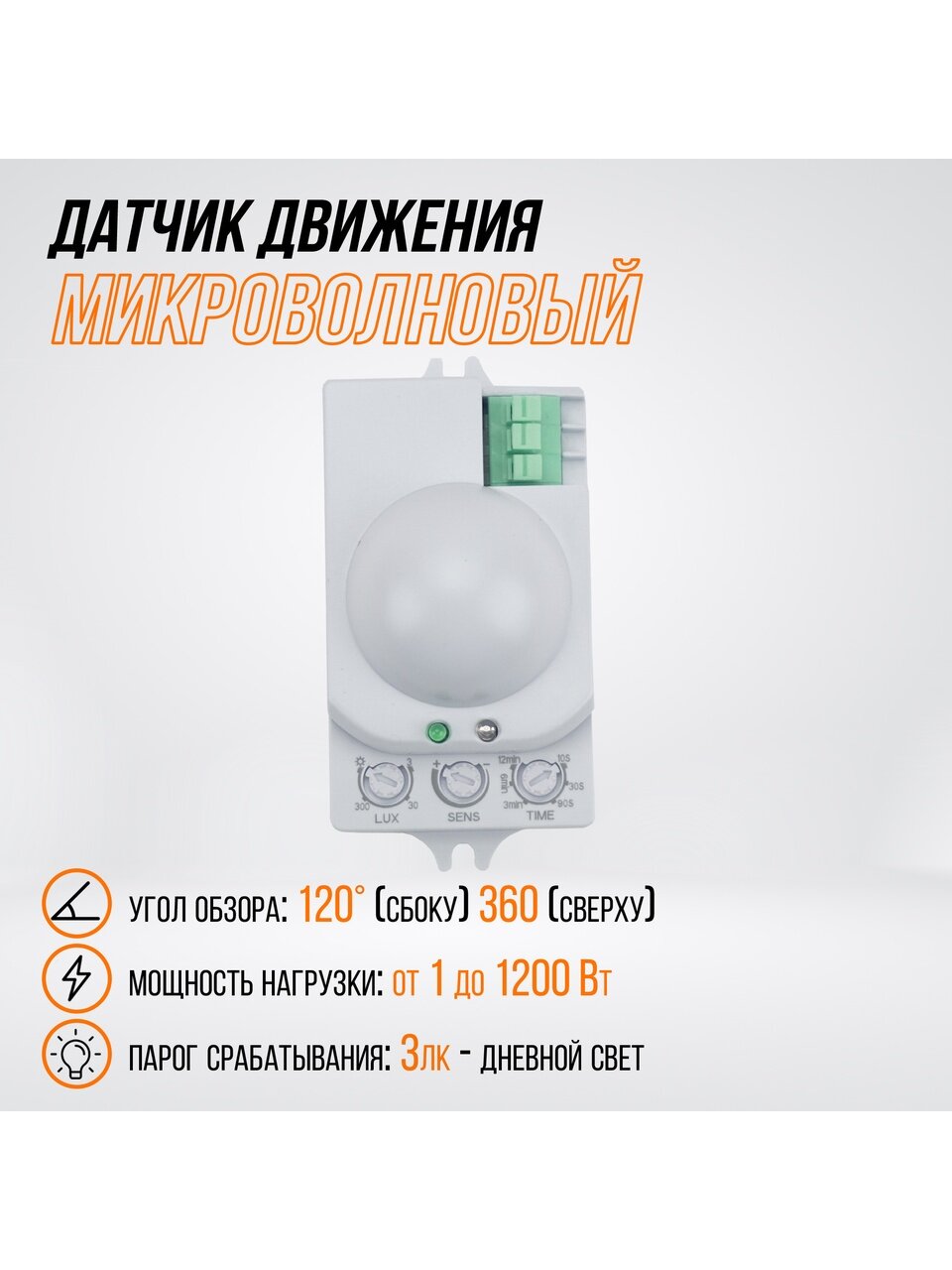 Вы можете приобрести «Датчик движения встраиваемый, 1200 Вт, 1-8 м, 120°, 360 °, IP20, 3+ лк, 5.8 ГГц, TDM Electric, ДДМ-01, SQ0324-0015» и другие товары в нашем интернет-магазине в Иваново по низким ценам и с бесплатным самовывозом.