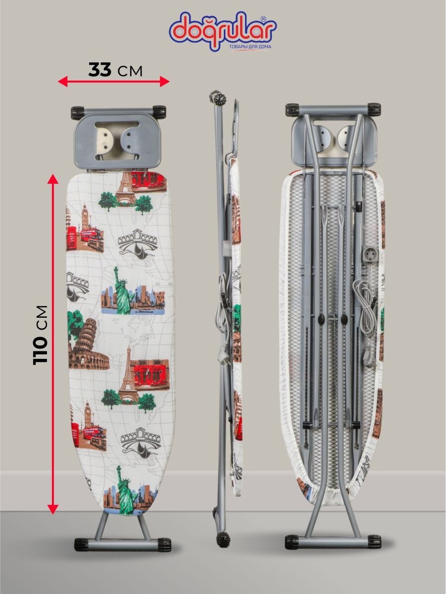 - Размер гладильной поверхности с учетом подставки под утюг: 33х122 см.