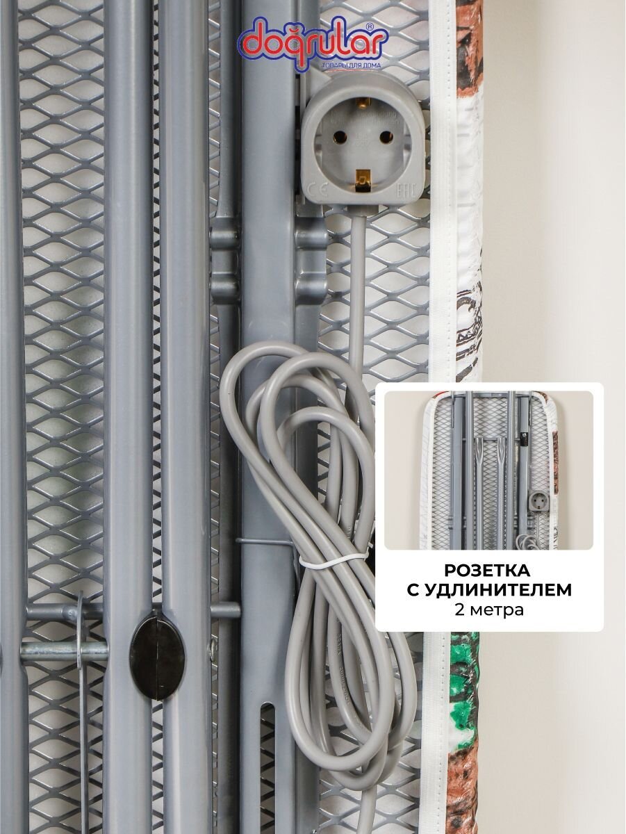 Гладильная доска "Сити" от Dogrular сочетает в себе высокую функциональность и стильный внешний вид. Благодаря встроенной розетке и удлинителю, подключение утюга становится максимально простым и удобным, даже если розетка находится далеко. Металлическая основа обеспечивает устойчивость, а хлопковый чехол гарантирует бережное отношение к ткани. Высота регулируется в двух положениях, что позволяет подобрать оптимальный уровень для комфортной работы.
