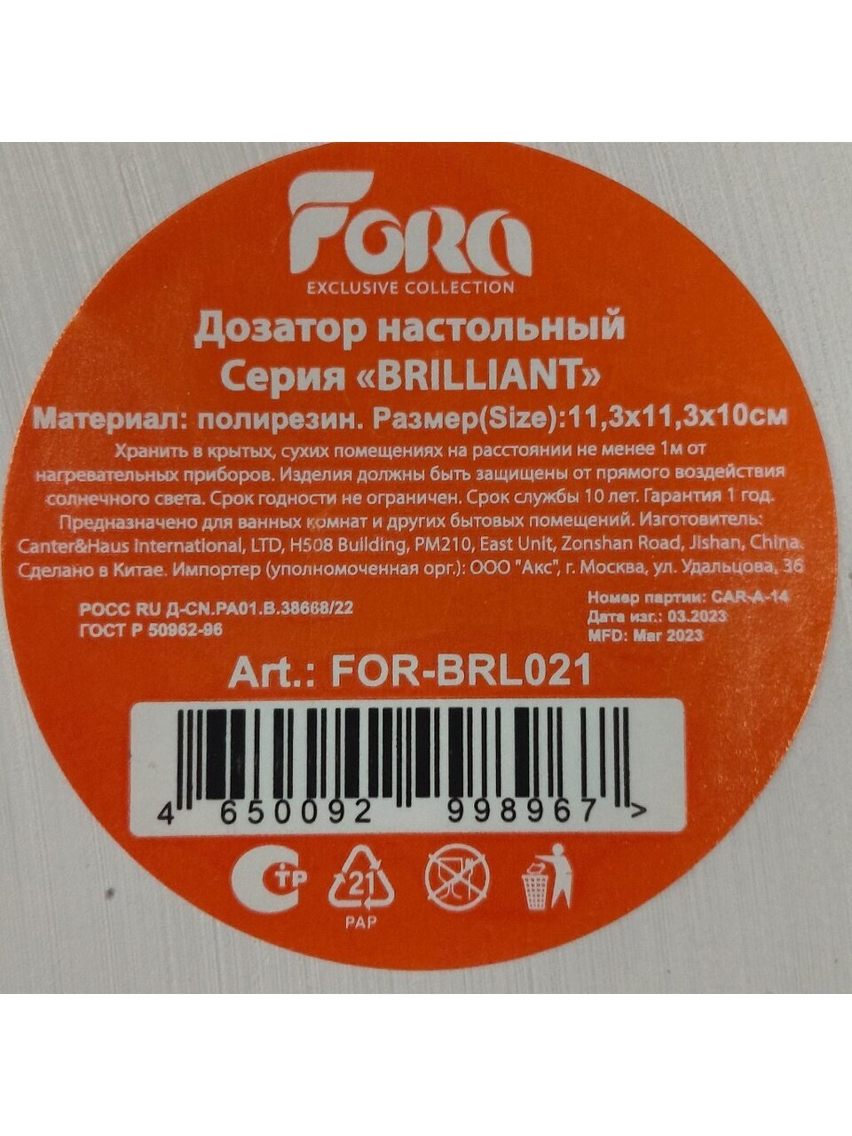 Вы можете приобрести «Дозатор для жидкого мыла, Fora, Brilliant, полирезин, 10.5х15.8 см, 450 мл, FOR-BRL021» и другие товары в нашем интернет-магазине в Иваново по низким ценам и с бесплатным самовывозом.