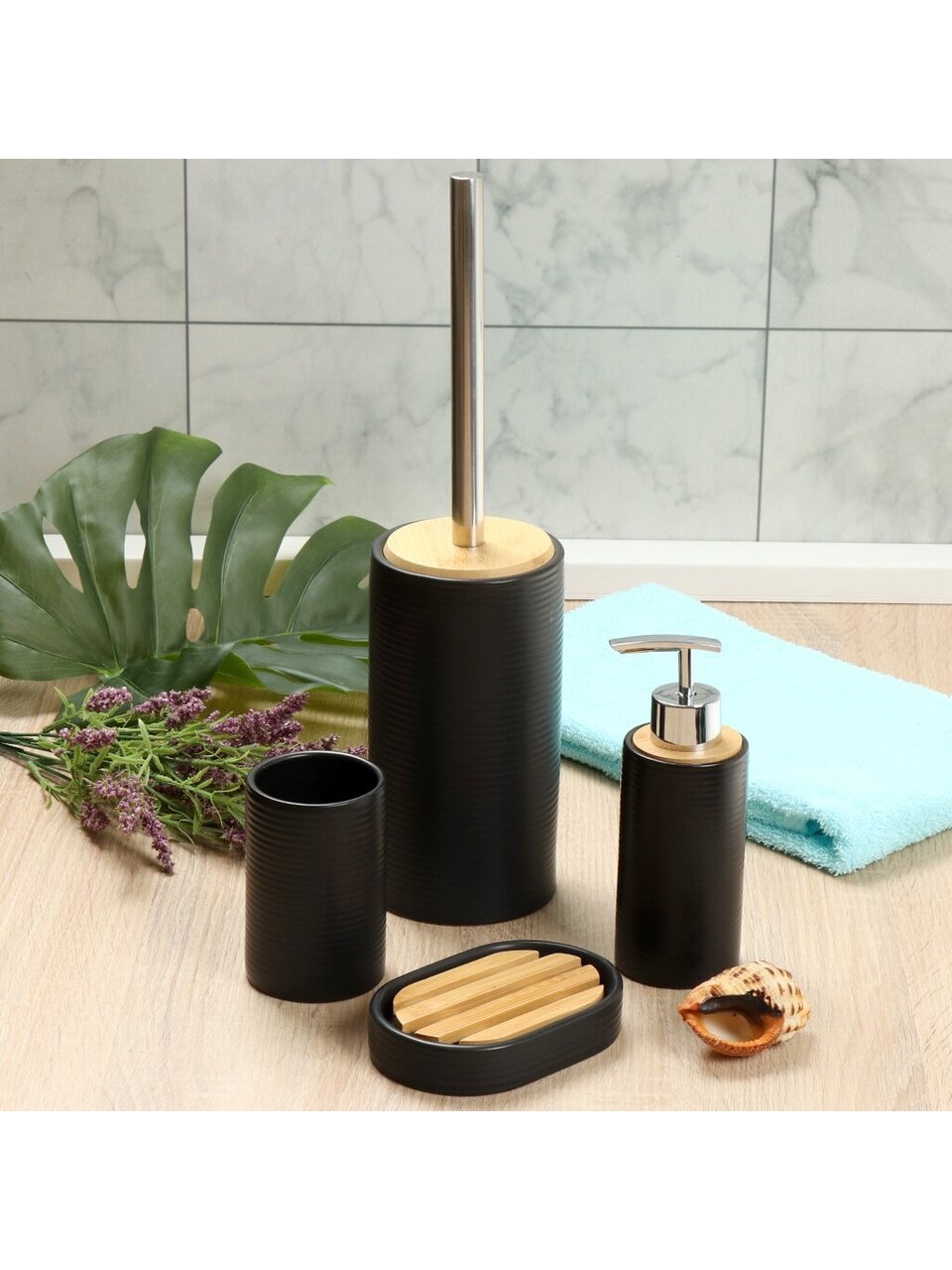 Дозатор для жидкого мыла можно приобрести вместе с другими аксессуарами для ванной комнаты, собрав единый по цвету и стилю комплект.