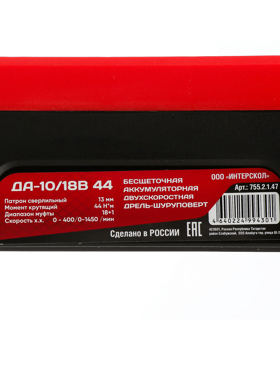 Вы можете приобрести «Дрель-шуруповерт аккумуляторный, Интерскол, ДА-10/18В, бесщеточный, 18 В, 2АКБ+ЗУ, кейс, 755.2.1.47» и другие товары в нашем интернет-магазине в Санкт-Петербургe по низким ценам и с бесплатным самовывозом.