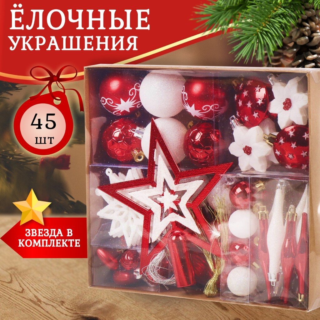 Яркий набор ёлочных украшений 45 шт. — создайте праздничное настроение дома или на даче, не опасаясь разбить любимые игрушки. Безопасно, удобно, выгодно!