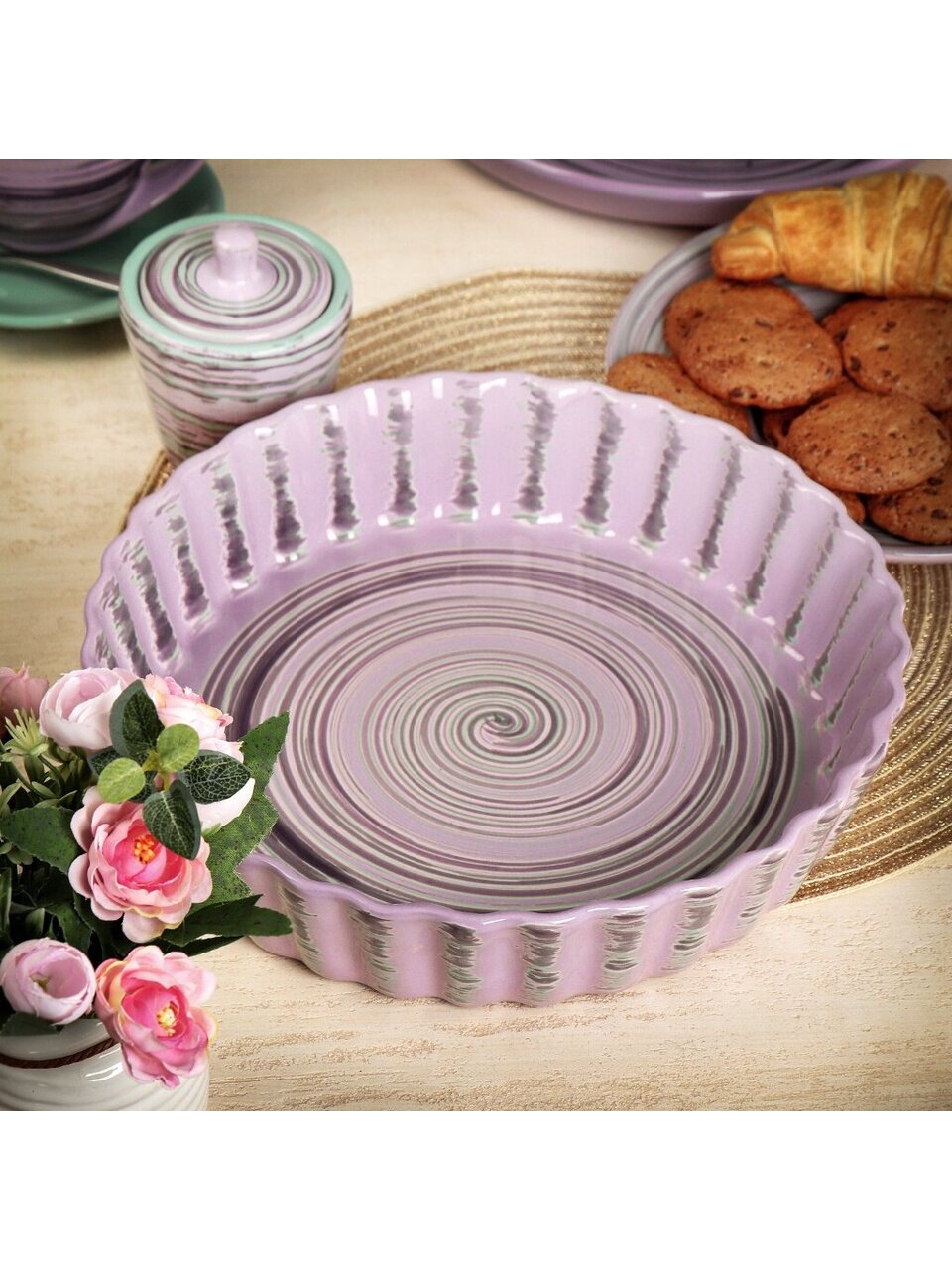 Керамическая форма для запекания 28 см, 2.5 л — элегантное решение для пирогов и запеканок, устойчивое к перепадам температуры, стиль «Лаванда» для вашего дома.