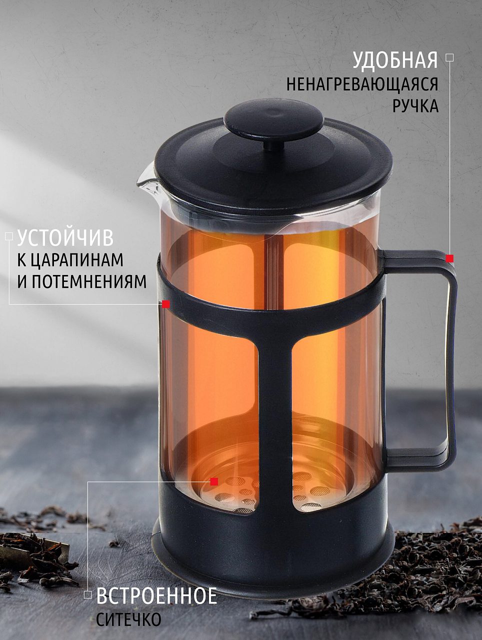 Френч-пресс позволит быстро и просто приготовить свежий и ароматный чай или кофе. Готовить напитки с помощью френч-пресса очень просто. Насыпьте внутрь заварку и залейте кипятком. Остановить процесс заваривания легко. Для этого нужно просто опустить поршень, и заварка уйдет вниз, оставляя вверху напиток, готовый к употреблению. Френч-пресс - это совершенный чайник для ежедневного использования.