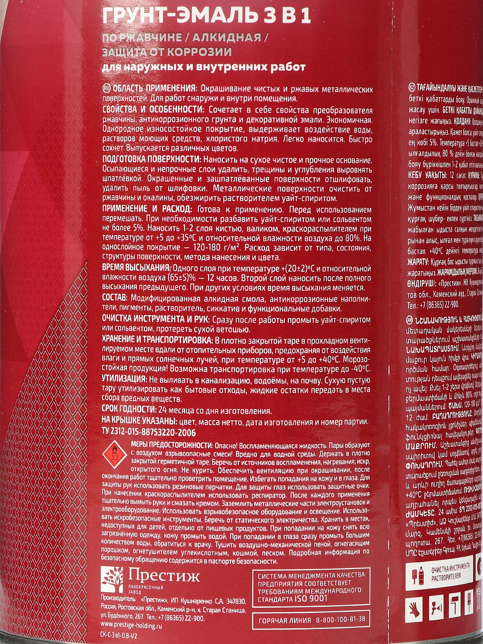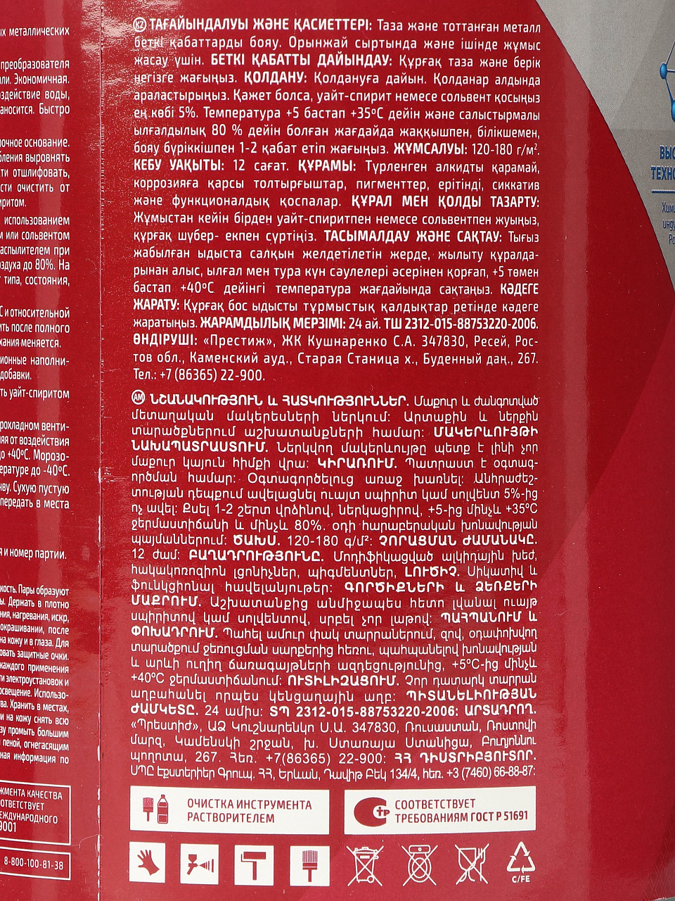 - Состав: смола алкидная, наполнители, пигменты, растворитель и функциональные добавки.