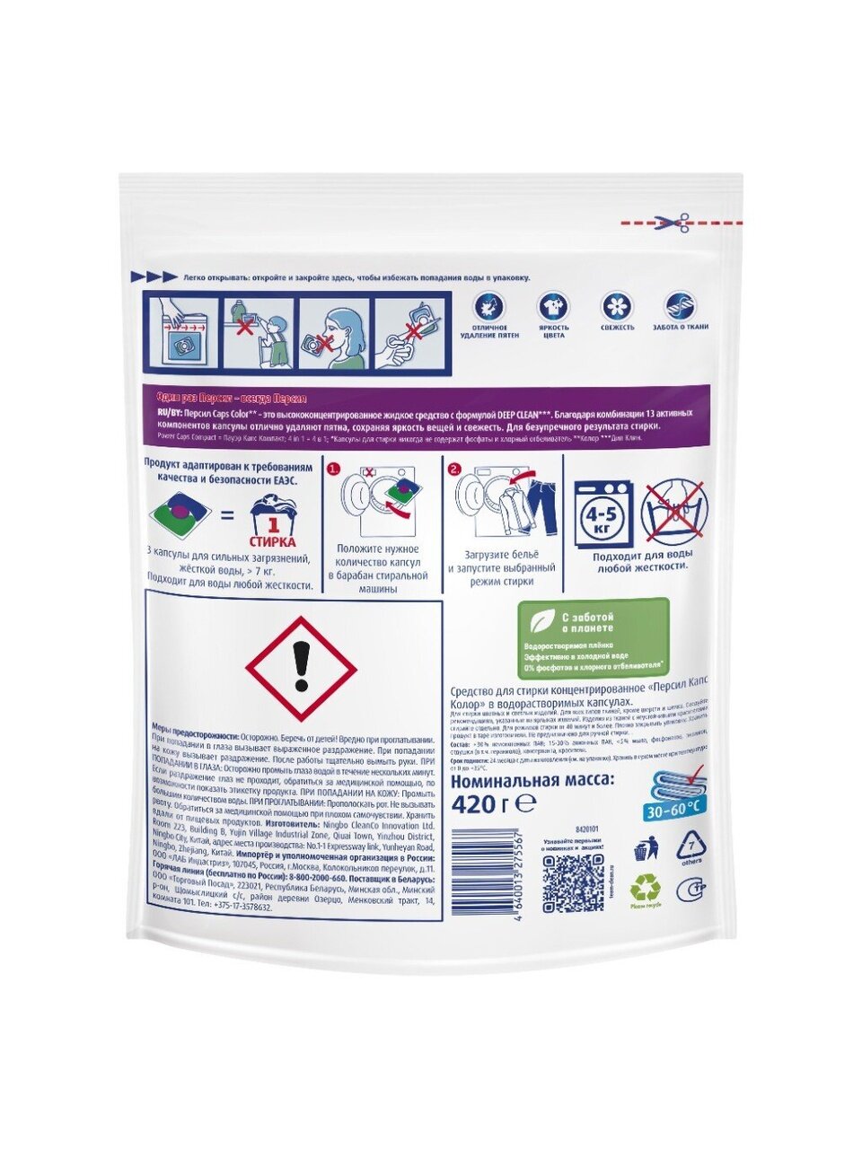 Персил Power Caps Color 4 in 1 - высококонцентрированное жидкое средство для стирки, упакованное в водорастворимые капсулы.