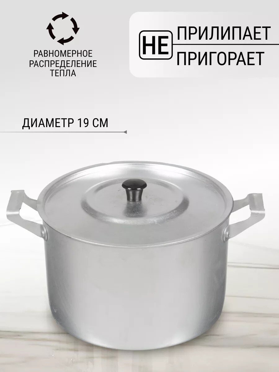 Кастрюля алюминий, 3.5 л, с алюминиевой крышкой Scovo МТ-023 — это выбор для тех, кто ищет недорогую, лёгкую и практичную посуду для ежедневного использования. Благодаря однослойному дну и небольшому весу (0.45 кг), кастрюля быстро нагревается и экономит время на плите. Алюминиевый корпус без антипригарного или эмалированного покрытия прост в уходе и подойдёт для варки супов, макарон, пельменей или компота.