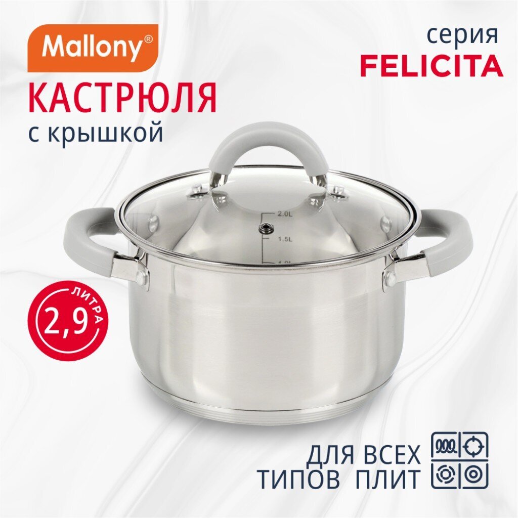 Универсальная кастрюля из нержавеющей стали 2.9 л Mallony Felicità — идеальный выбор для индукционных плит, быстрая готовка без пригорания и надежность на годы.
