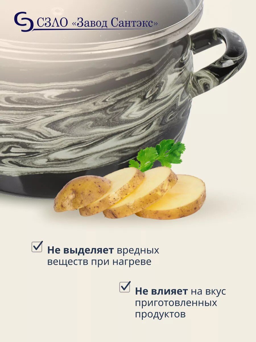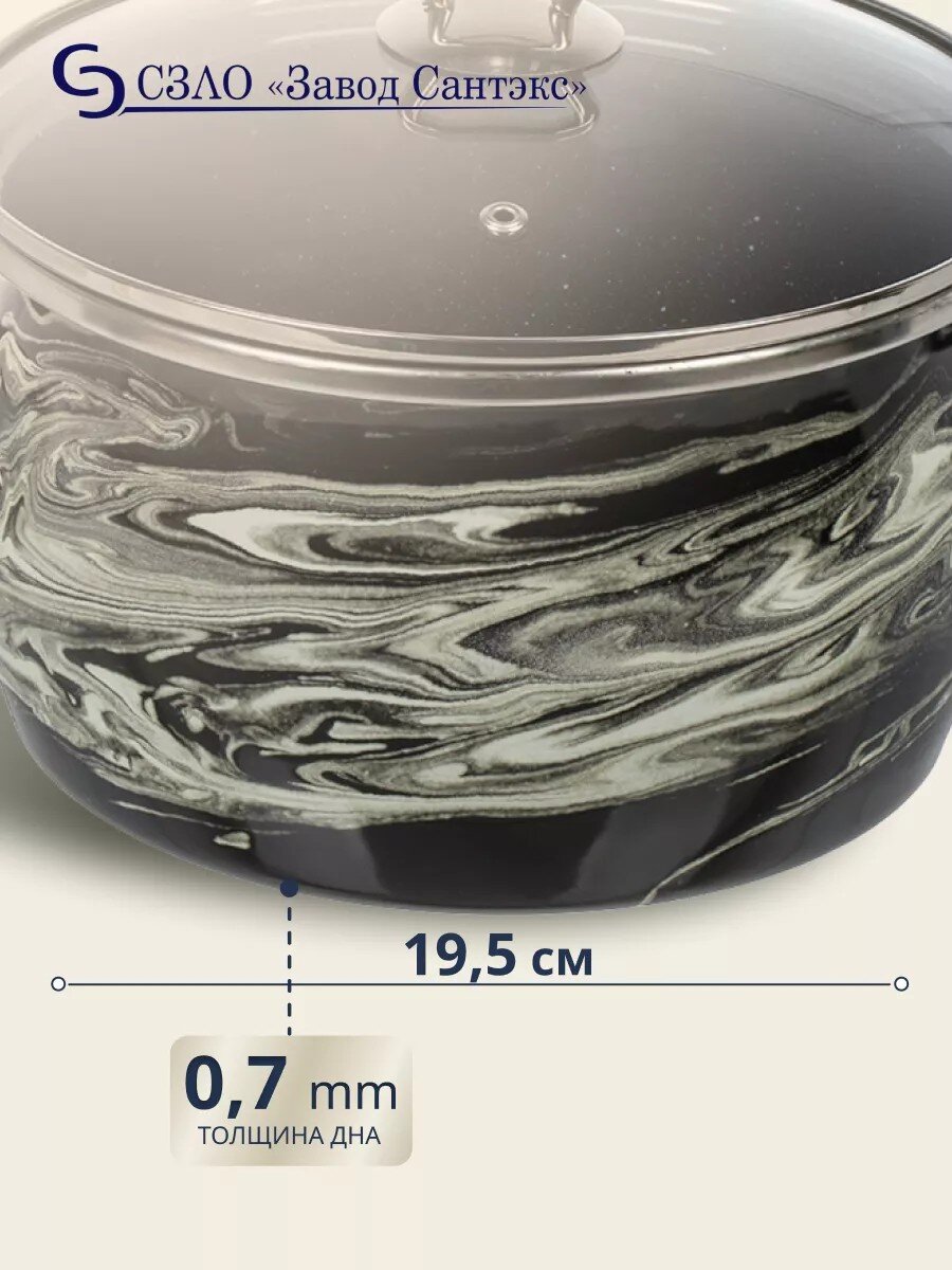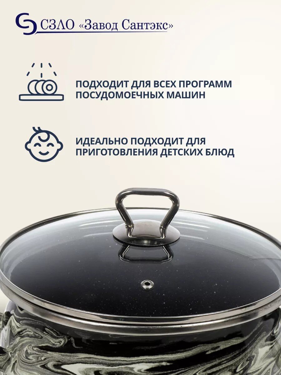 Кастрюля эмалированная Сантэкс Шейк 4 л: долговечная сталь, стеклянная крышка, подходит для индукции и мытья в посудомойке — идеальный выбор для семьи и дачи.