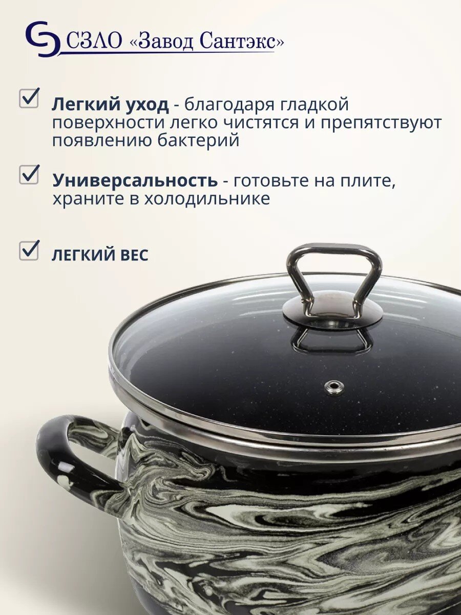 Вы можете приобрести «Кастрюля эмалированная сталь, 4 л, крышка стекло, сферический, Сантэкс, Шейк серый гранит, 1-2440111, черно-белая, индукция» и другие товары в нашем интернет-магазине в Липецке по низким ценам и с бесплатным самовывозом.