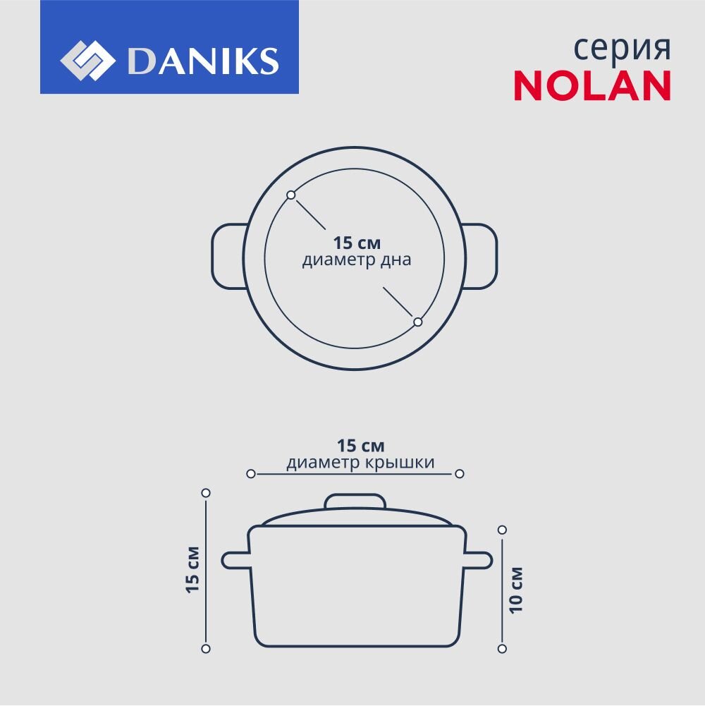 Кастрюля из нержавеющей стали 1.9 л Daniks Нолан: идеальный выбор для индукционных плит, удобная мерная шкала, стеклянная крышка и долговечность для дома и дачи.