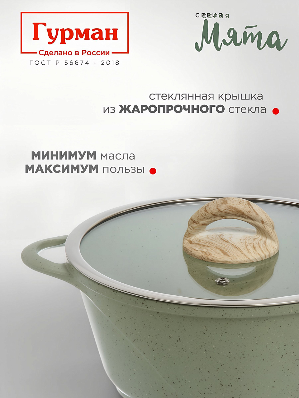 - Кастрюля из коллекции «Мята» от бренда Гурман очень проста в использовании и уходе, потому что её можно мыть в посудомоечной машине.