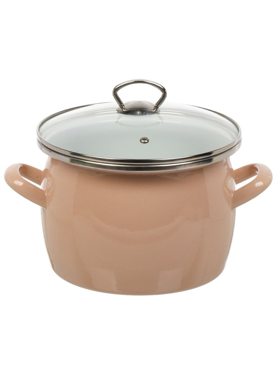 Кастрюля эмалированная Сантэкс 5 л с крышкой из стекла: идеальный выбор для индукционных плит — стиль «Кофе», долговечность, универсальность для дома и дачи.