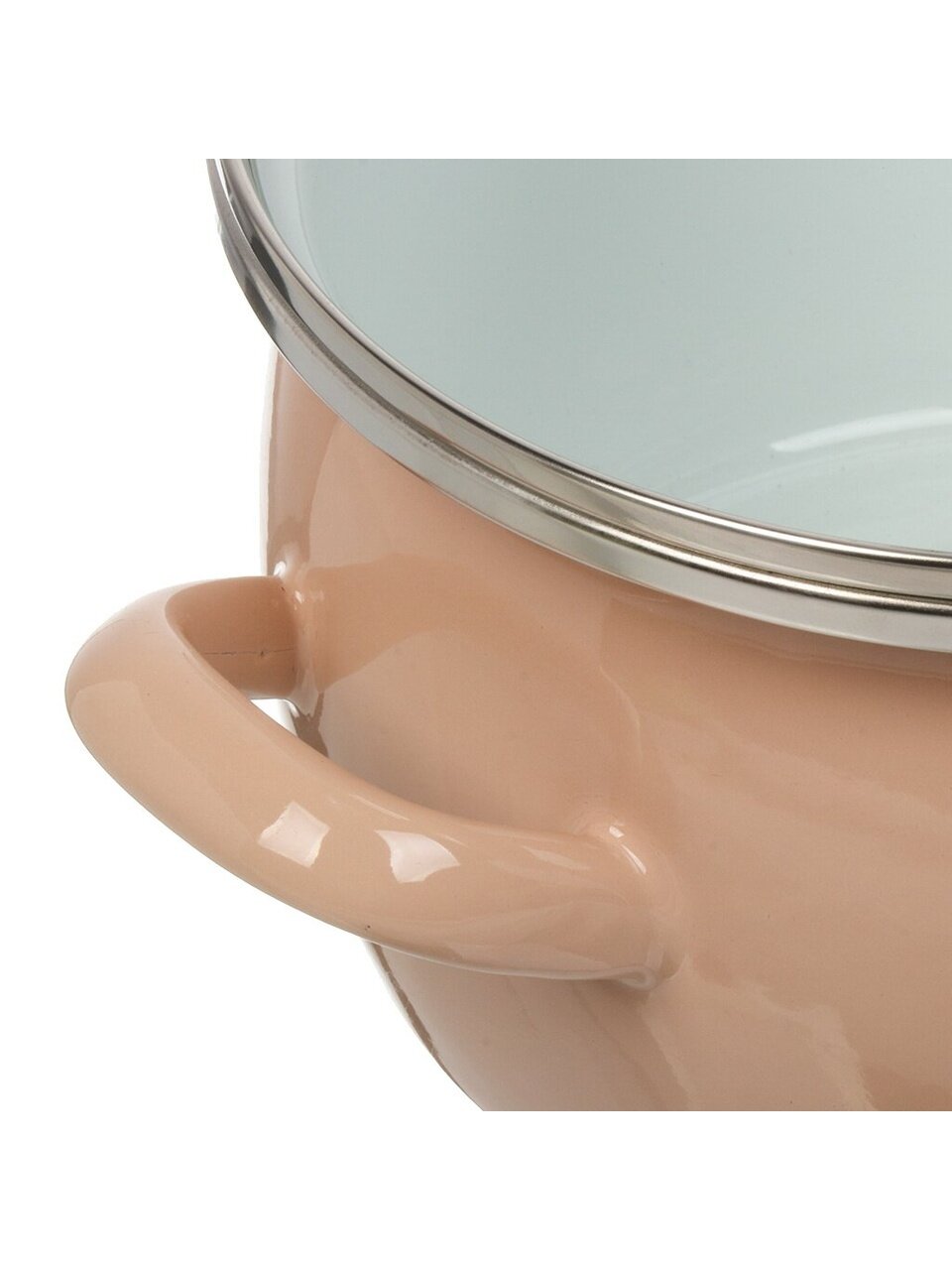 Чем отличается эта кастрюля? В отличие от моделей с антипригарным покрытием, эмалированная сталь не впитывает запахи и устойчива к царапинам, а отсутствие мерной шкалы компенсируется простотой ухода и универсальностью. Кастрюля подходит для варки супов, пельменей, компота, приготовления каш и макарон. Как использовать кастрюлю на даче или в доме? Просто — она легкая (1,42 кг), удобна для транспортировки, а стильный кофейный дизайн гармонирует с любой кухней.