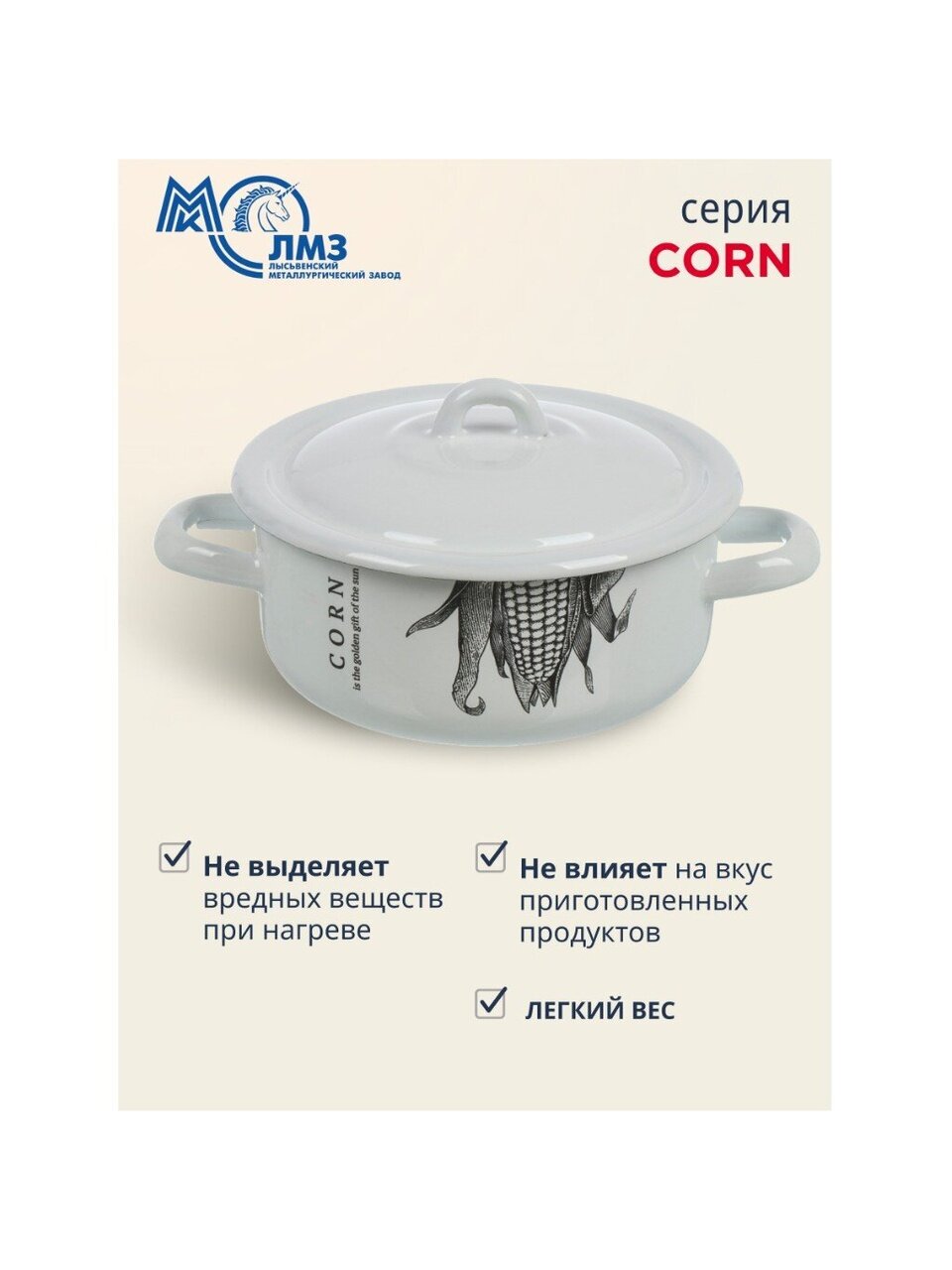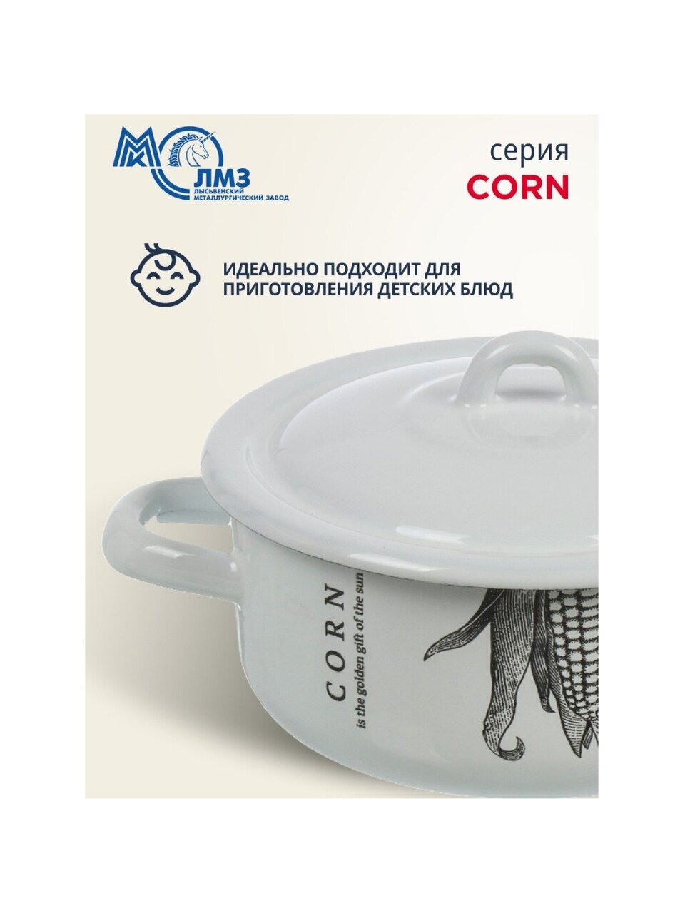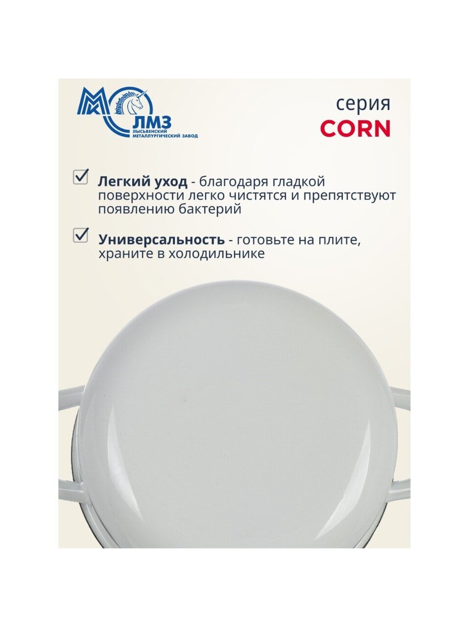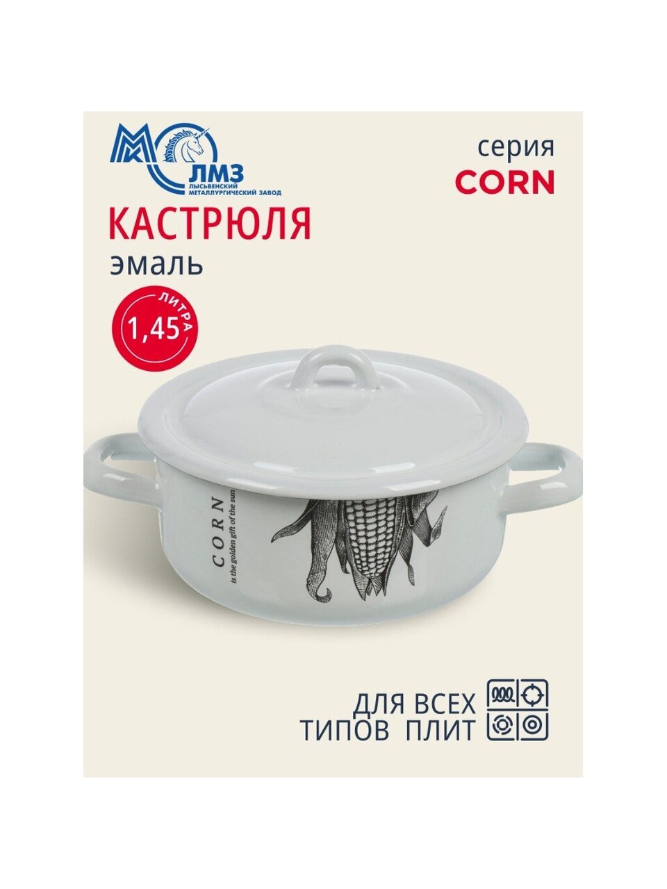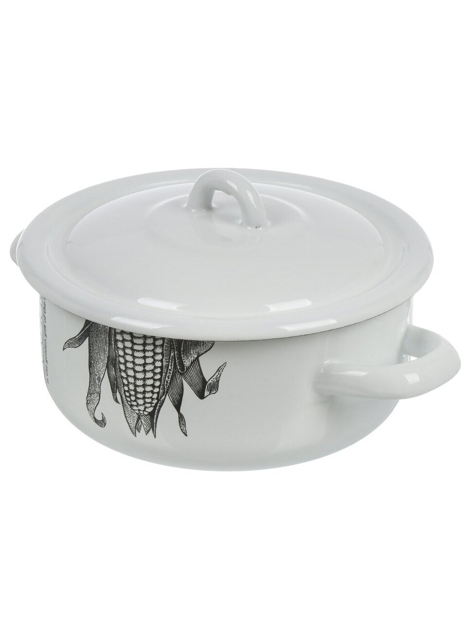 Эмалированная кастрюля ЛЗЭП Corn 1.45 л — универсальное решение для индукции и любых плит. Прочная сталь, компактность, стильный белый дизайн для дома и дачи.