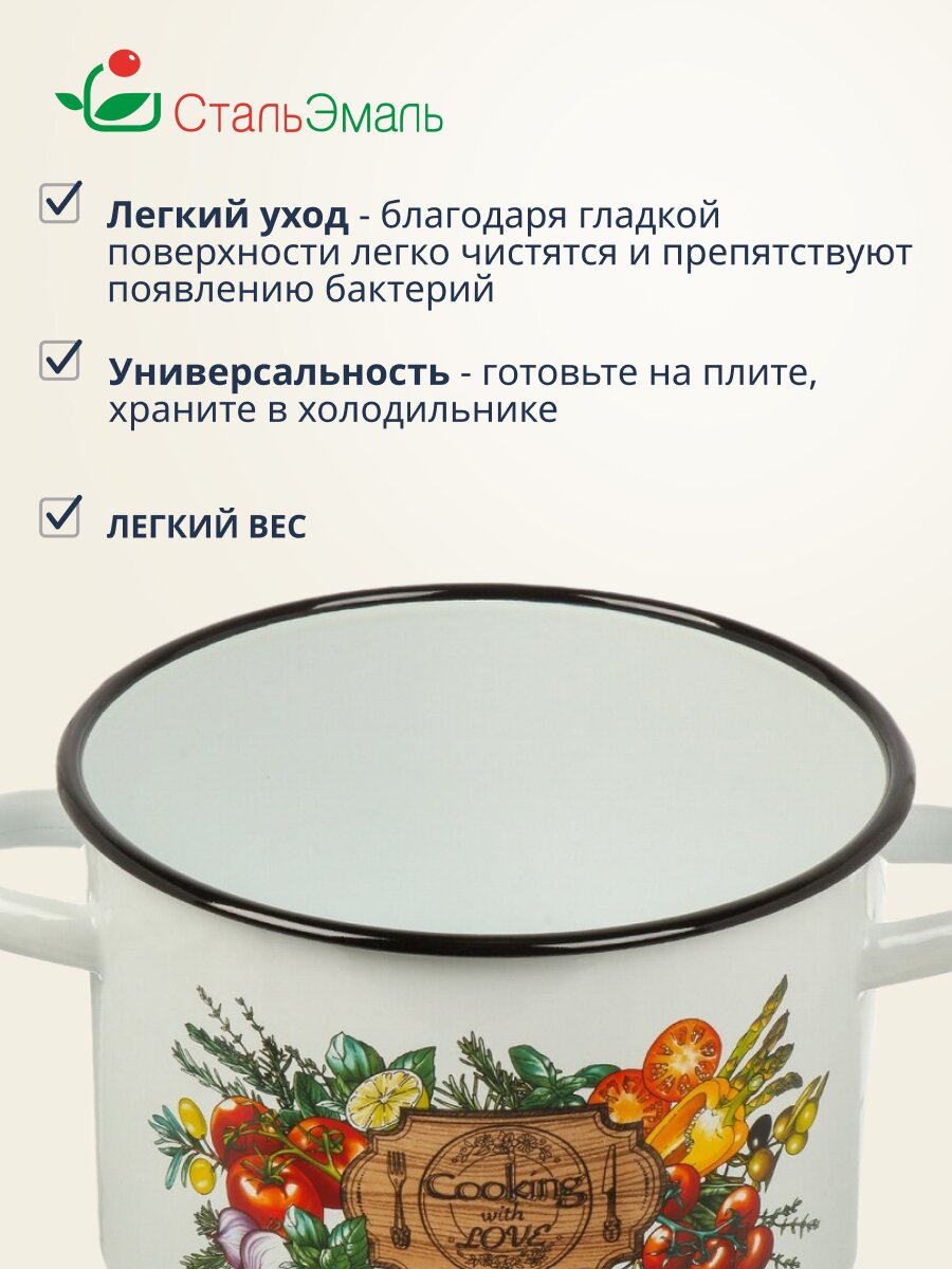 Кастрюля эмалированная СтальЭмаль Смак 2.9 л — универсальный выбор для дома и дачи: подходит для индукции, легко моется, долговечна, выгодно купить онлайн.