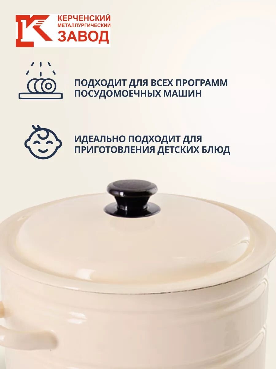 Кастрюля эмалированная 12 л Керченский завод — идеальный выбор для больших семей: варите суп, компот, пельмени, кашу или пюре без хлопот и пригорания.