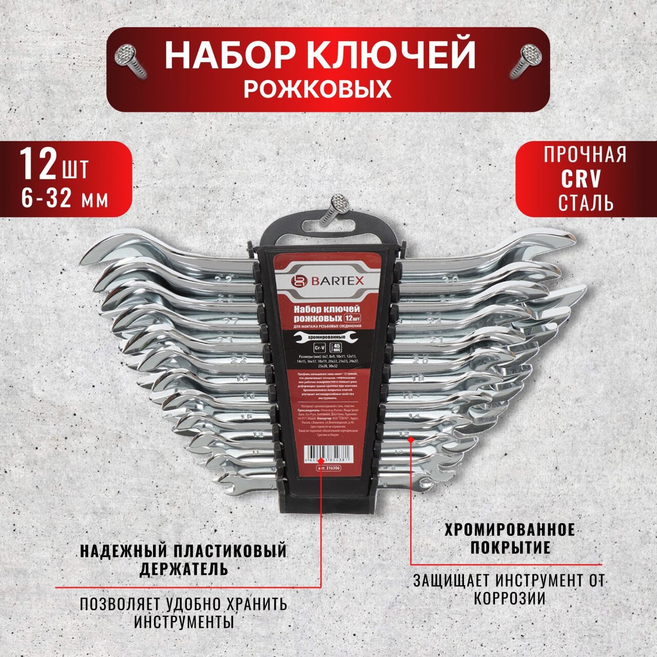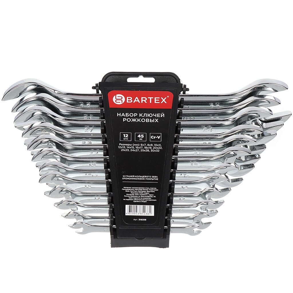 Вы можете приобрести «Набор ключей рожковый, 12 предметов, Bartex, 6-32 мм, хромированный зеркальный, CrV сталь, держатель» и другие товары в нашем интернет-магазине в Липецке по низким ценам и с бесплатным самовывозом.