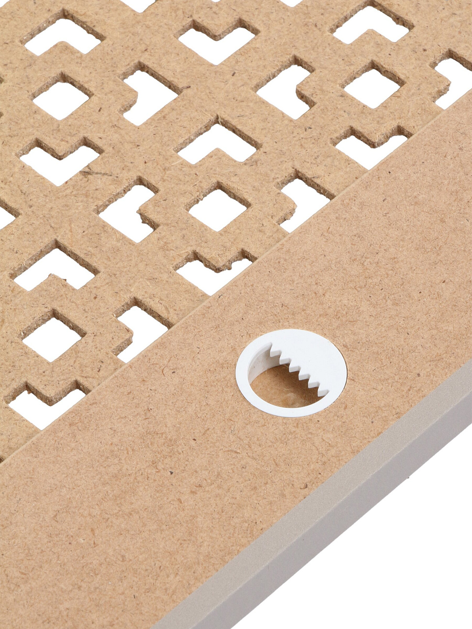 МДФ не нагревается, не царапает пол, не ржавеет, безопасен для детей. Перфорация обеспечивает свободную циркуляцию тепла.