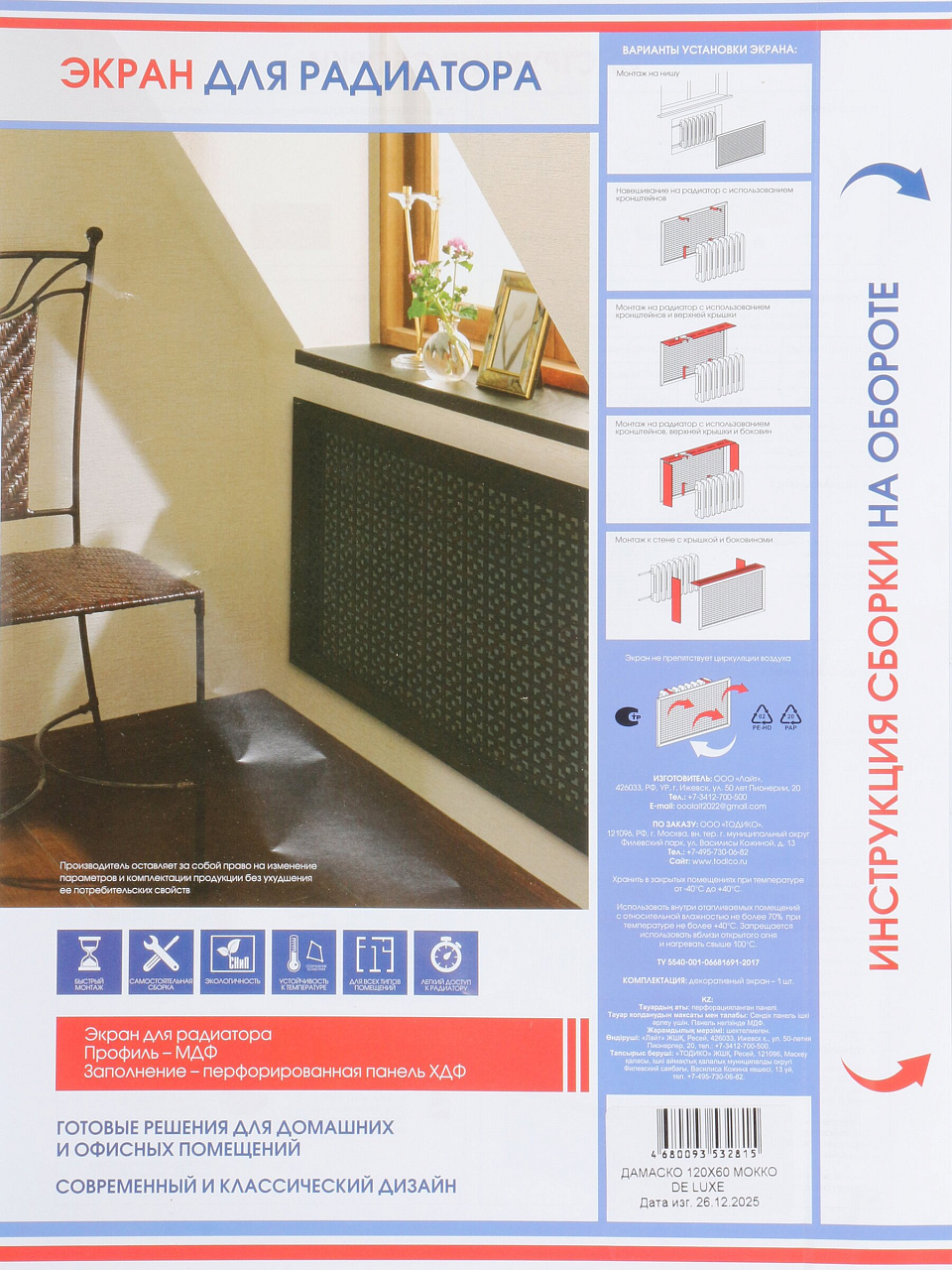 В отличие от металлических или пластиковых аналогов, МДФ не нагревается, не выделяет запаха и не желтеет со временем. Часто спрашивают, подходит ли экран для дачи или влажных помещений — покрытие устойчиво к перепадам температуры и влажности, что делает его универсальным решением. Как использовать экран для радиатора? Просто закрепите на батарее — без сверления и сложного монтажа.