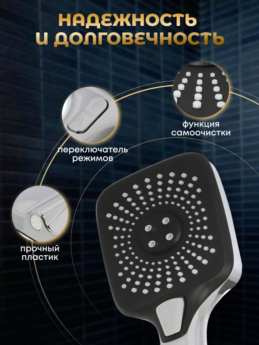 Лейка для душа выдаёт узконаправленный напор из отверстий, благодаря чему не происходит излишнего разбрызгивания, предотвращая распространение капель воды на пол и окружающие предметы, что поможет сохранить ванную комнату сухой и чистой.