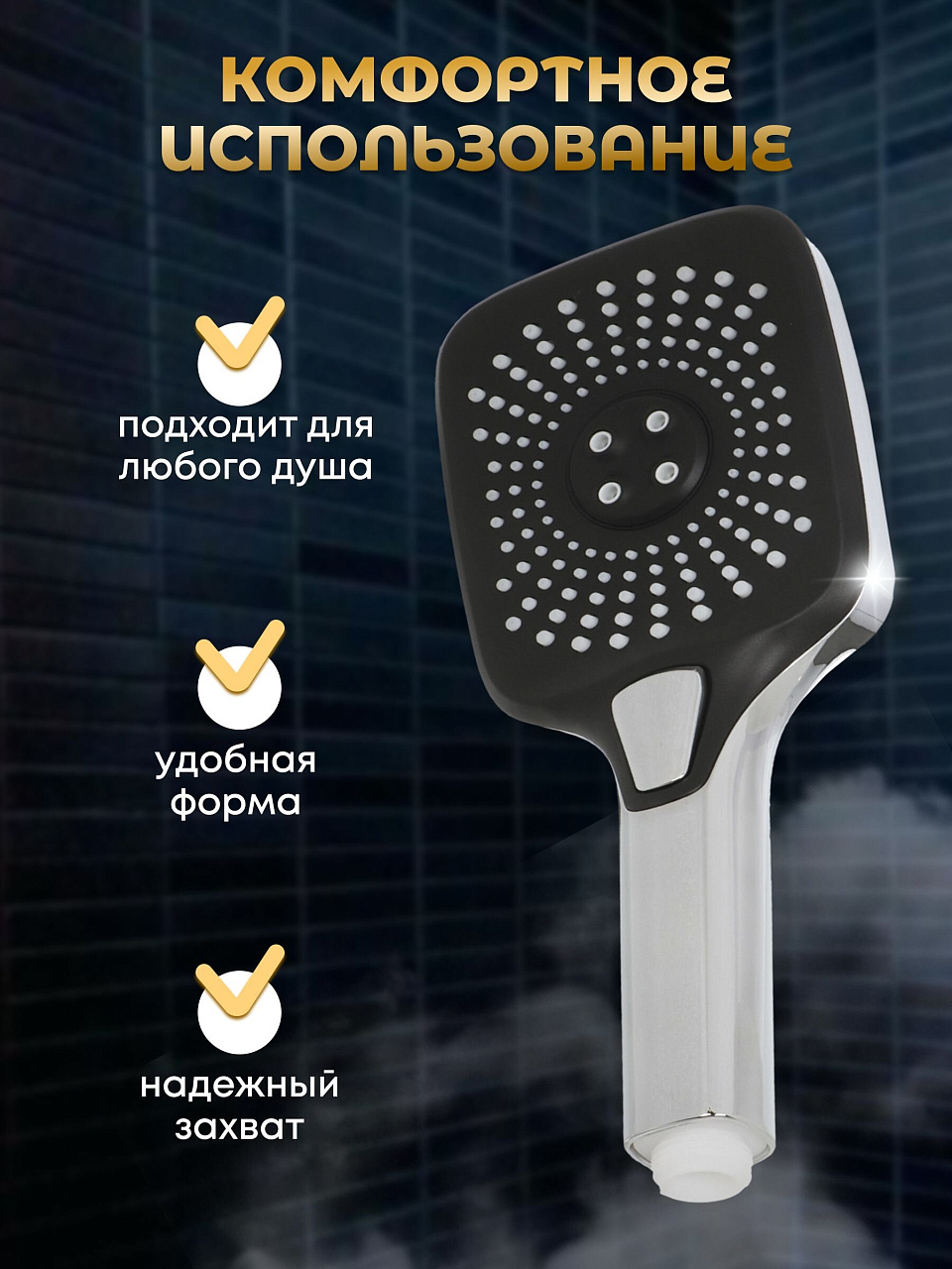 - Душевая лейка имеет удобную форму, которая обеспечивает надежный захват и комфорт при использовании.