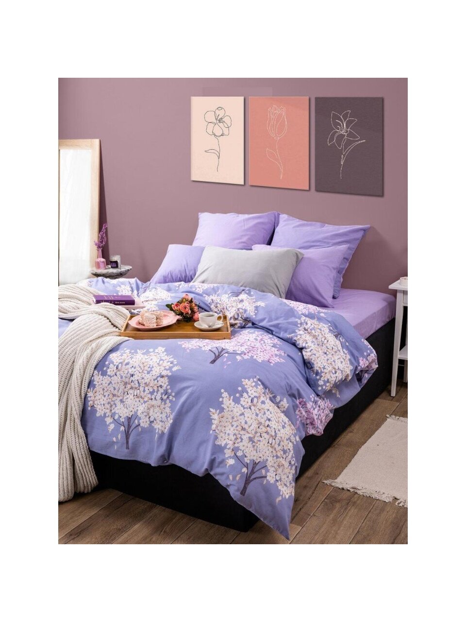 Постельное белье 1.5-спальное «Весенние деревья» из поплина: 4 предмета, 100% хлопок, подарочная упаковка — комфорт для сна и стильный подарок.