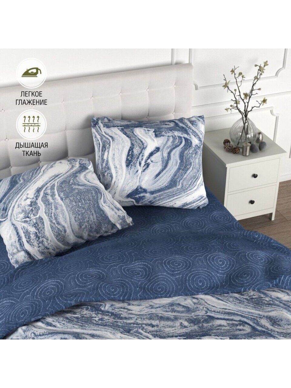 В комплекте простыня 215×240 см, пододеяльник 175×215 см, две наволочки 70×70 см — оптимально для большинства двуспальных кроватей.