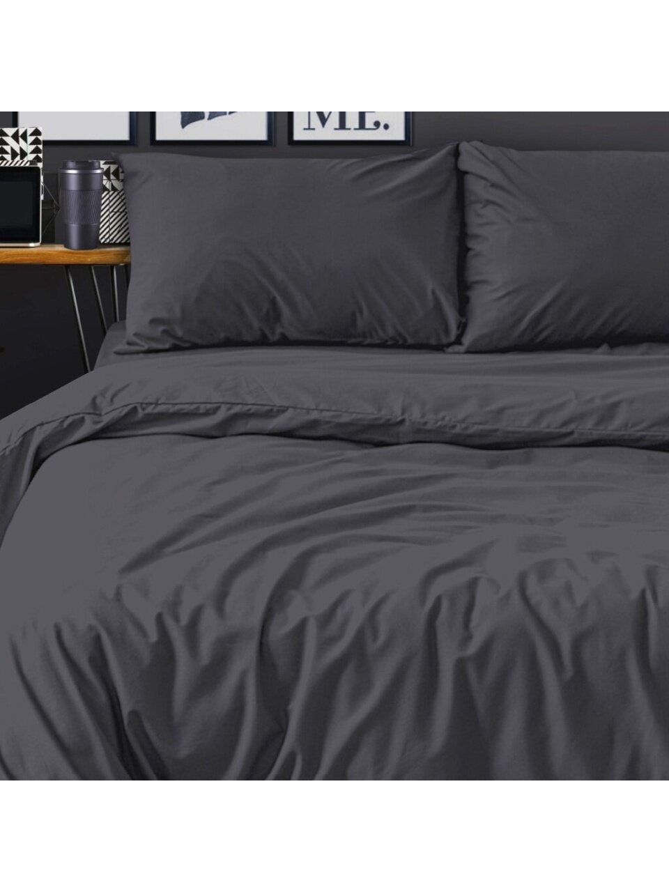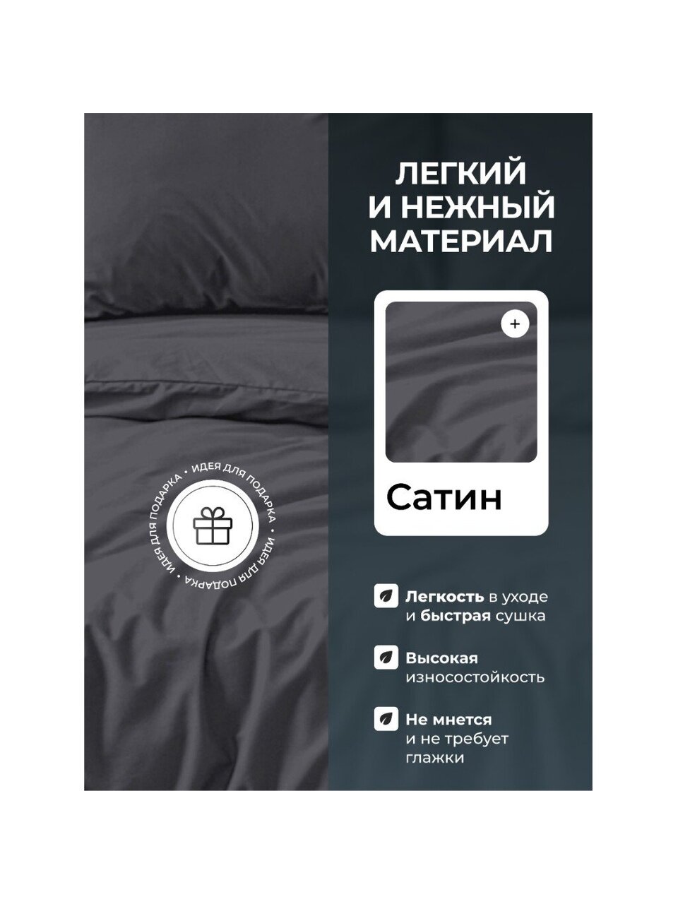Постельное белье 2-спальное Silvano из сатина: премиальный комфорт, подарочная упаковка, универсальный графитовый цвет. Идеально для дома, дачи или подарка.