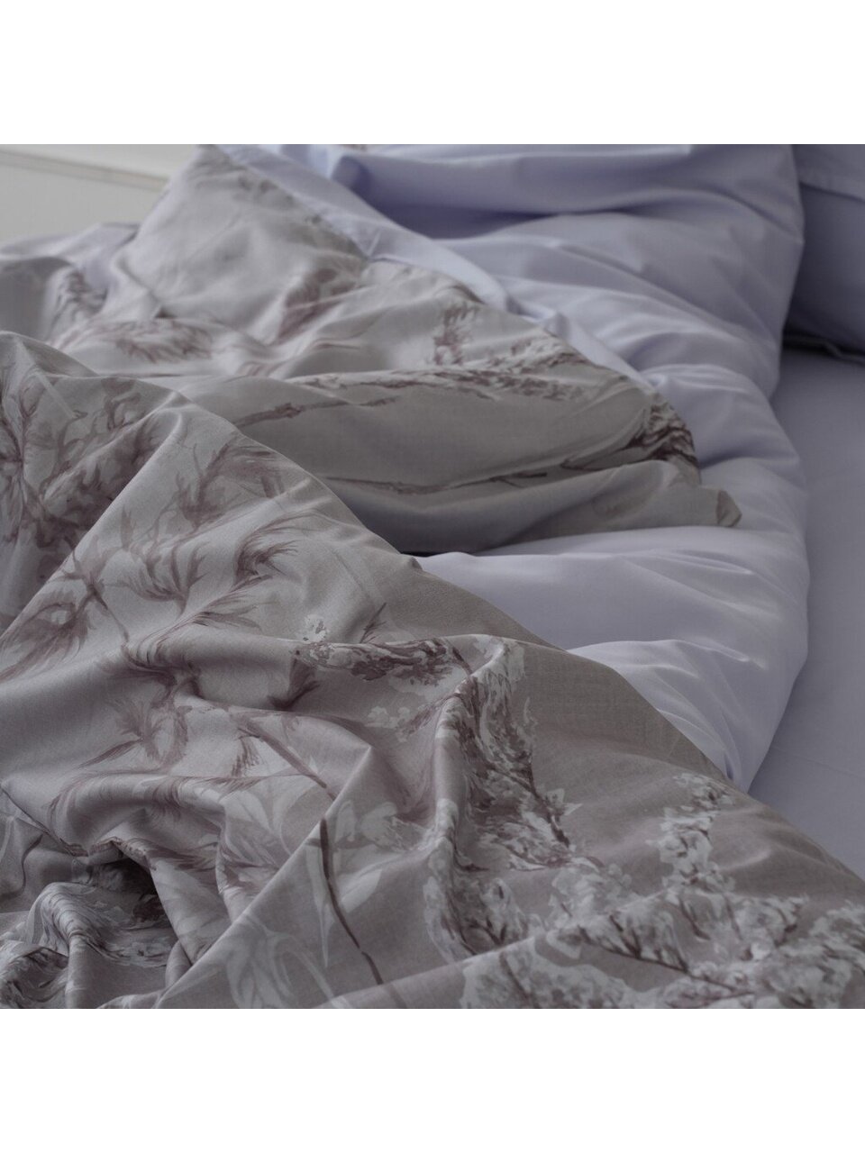 Постельное белье 1.5-спальное Mcotton Помпео: микросатин, 4 предмета, серебристый дизайн «Листья» — комфорт и стиль для вашего сна по выгодной цене.
