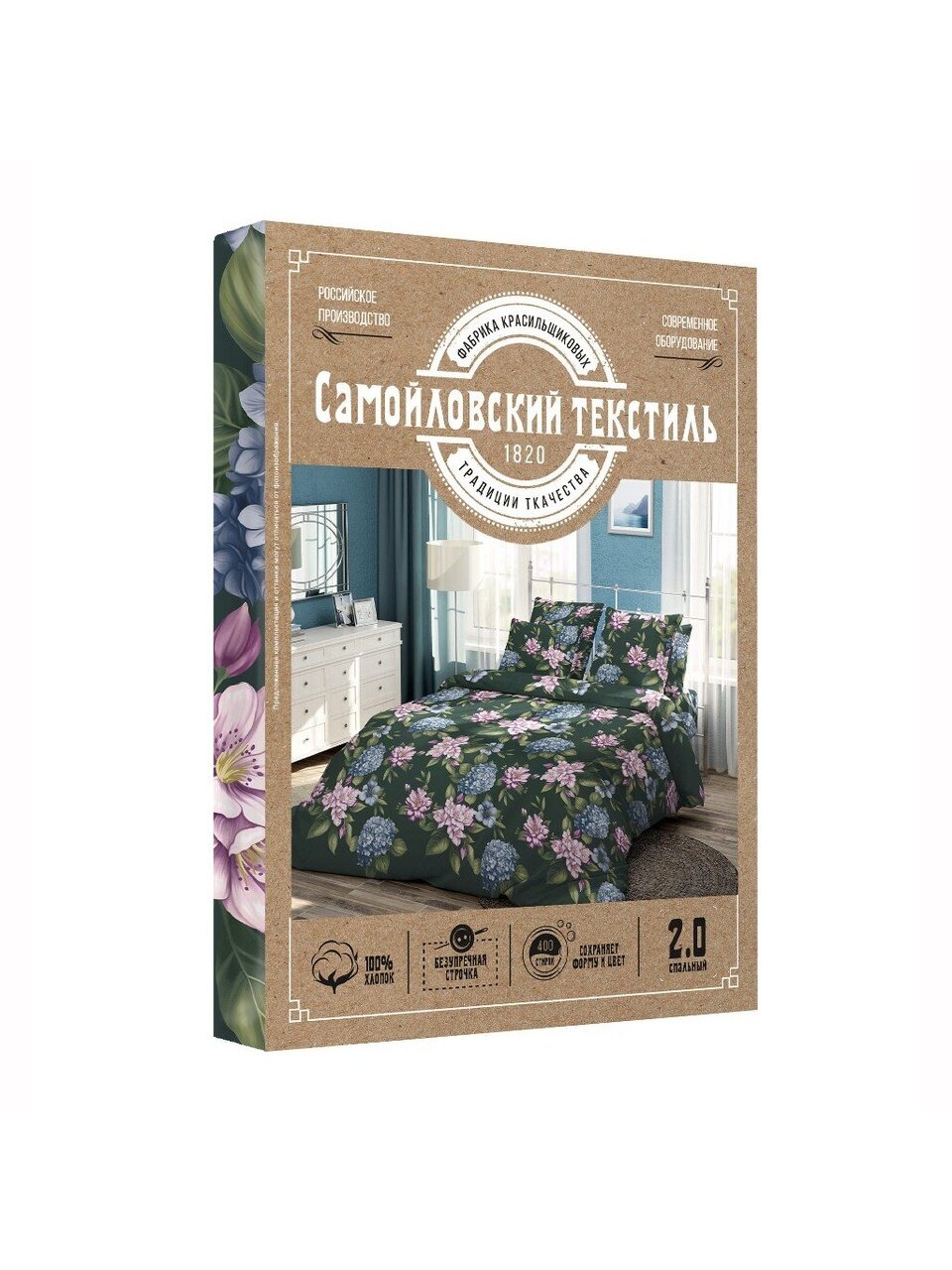 Постельное белье евро «Роскошный сад» от Самойловского текстиля: хлопок-бязь, простыня 220х240 см, 2 наволочки 70х70, свежий стиль для комфортного сна.