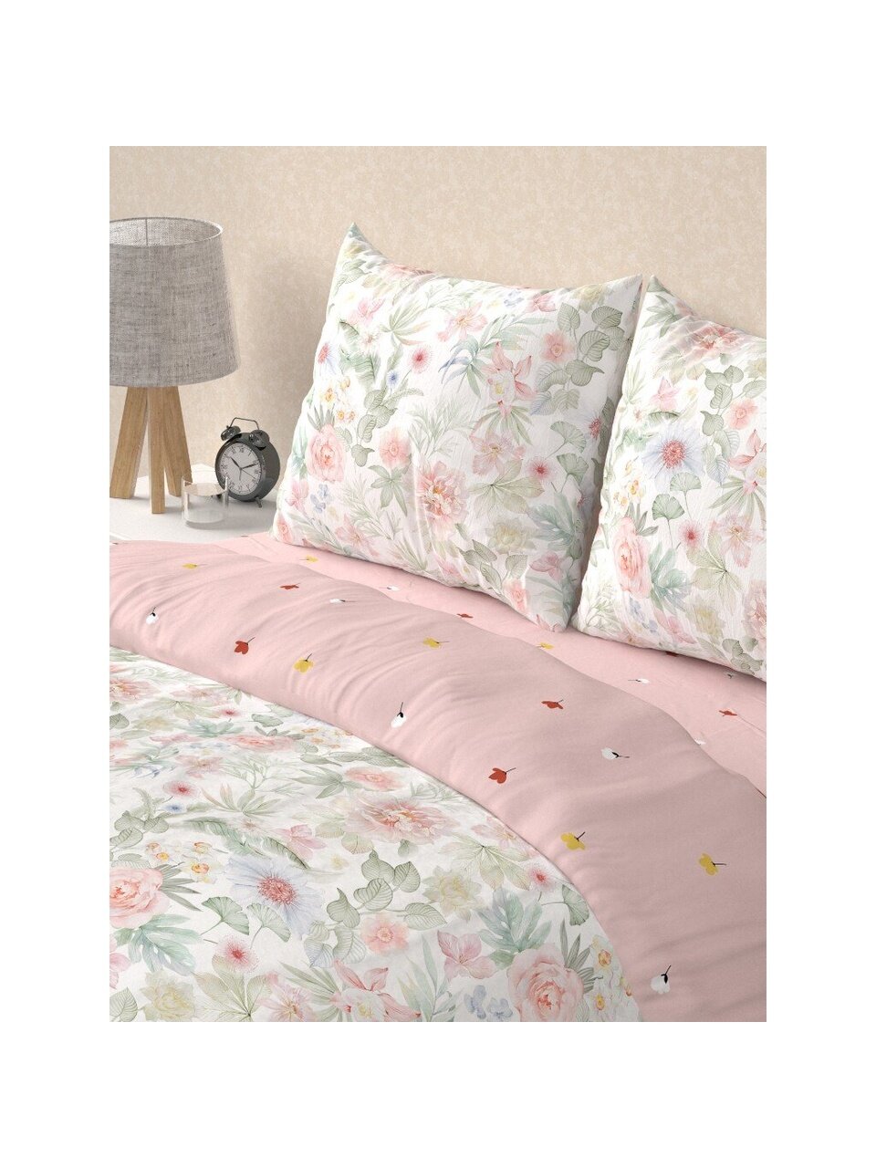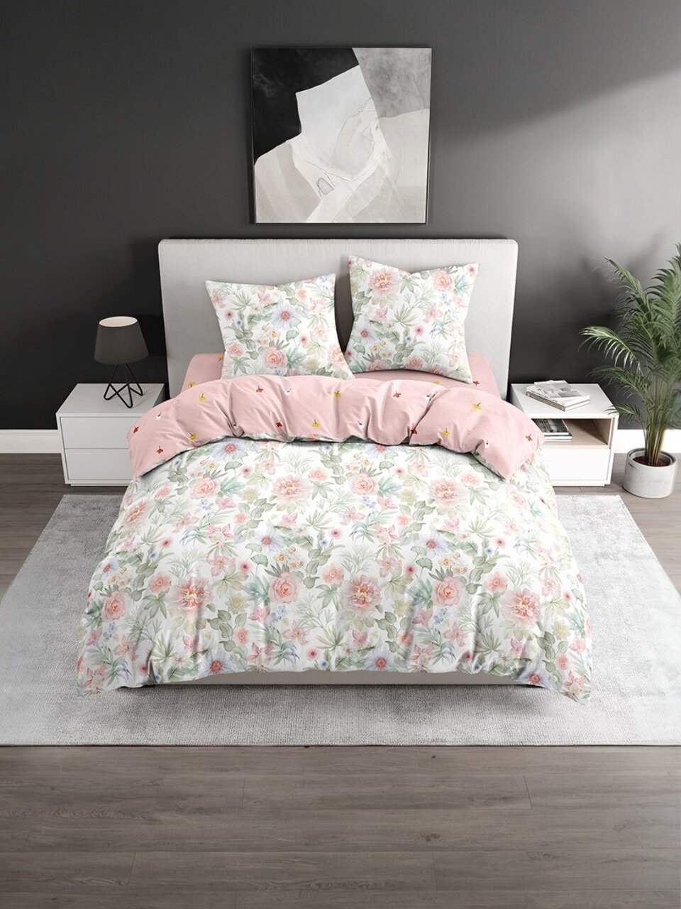 Постельное белье 2-спальное Bravo «Милд» из поплина: натуральный хлопок, комфортный сон, стильный розовый дизайн с цветами и листьями — идеальный выбор для дома и дачи.