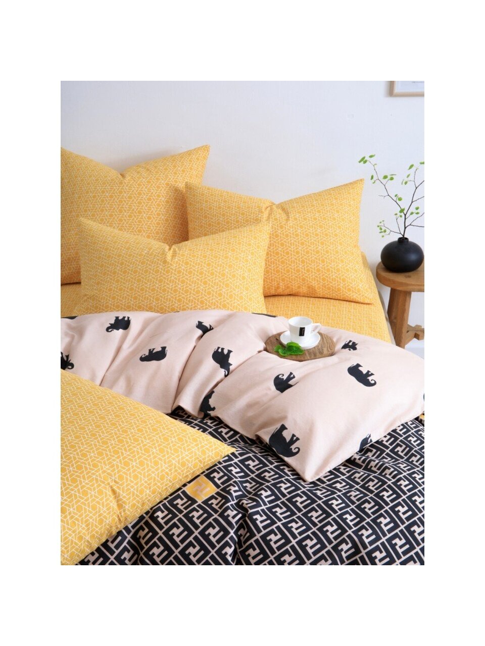 В комплекте простыня 215×240 см, два пододеяльника 145×215 см, две наволочки 70×70 см. Простыня без резинки, подходит для стандартных и увеличенных матрасов.