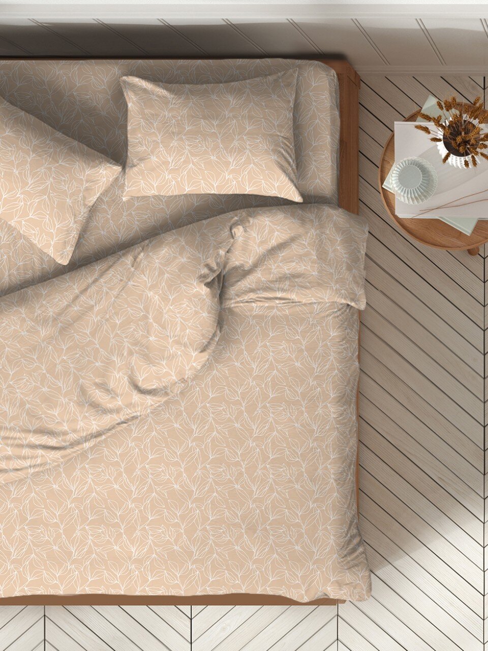 Постельное белье 2-спальный Silvano 20461: стильный бежевый комплект из поплина с хлопком — идеальный выбор для комфортного сна и подарка.
