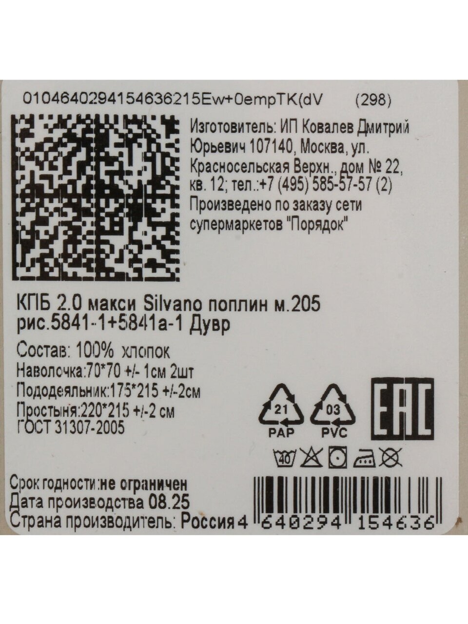 Вы можете приобрести «Постельное белье 2-спальное, простыня 215х220 см, 2 наволочки 70х70 см, пододеяльник 175х215 см, Silvano, поплин, Дувр» и другие товары в нашем интернет-магазине в Ельце по низким ценам и с бесплатным самовывозом.