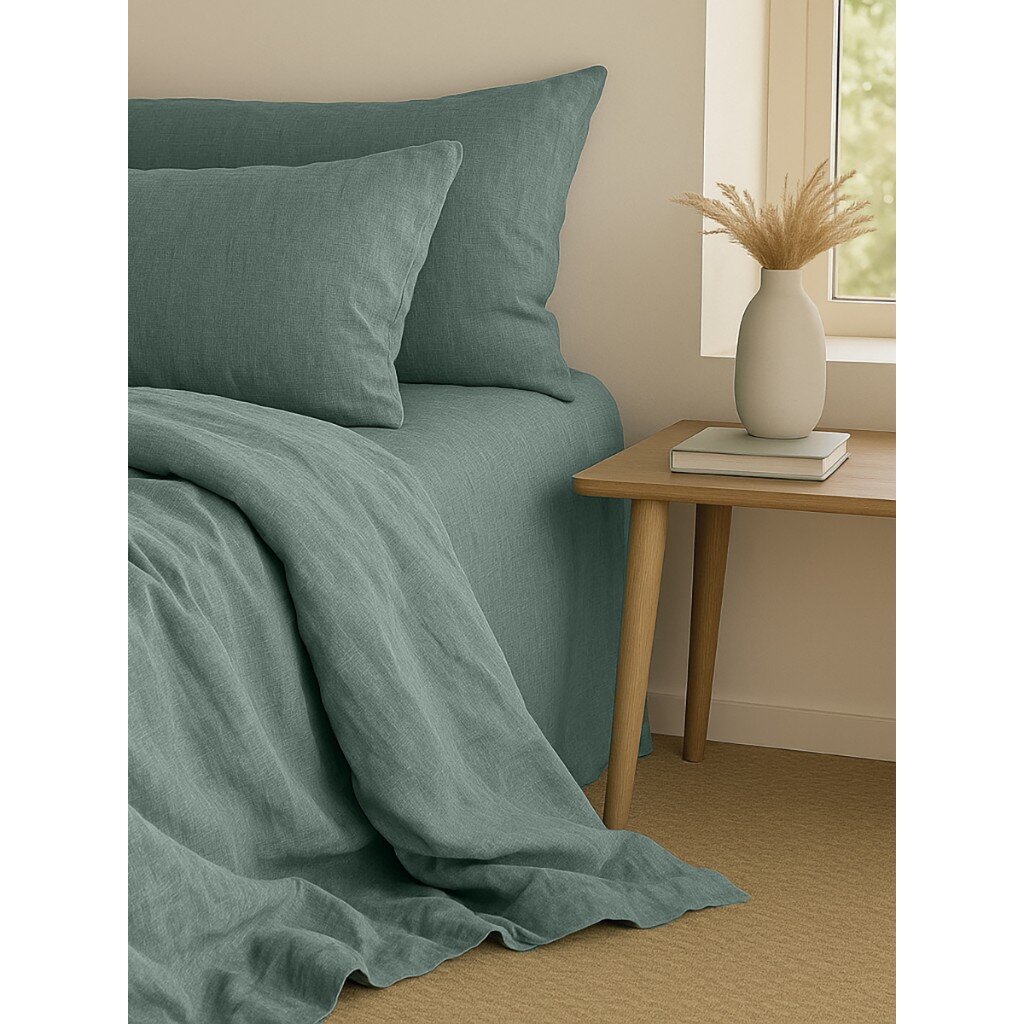 Постельное белье евро Silvano из варёного хлопка: глубокий зелёный цвет, премиальный размер 240×260 см, мягкость и уют для комфортного сна. Долговечность — ваш спокойный выбор.
