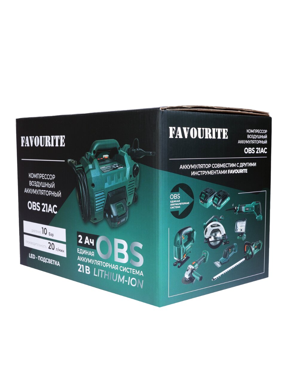 Аккумуляторный компрессор Favourite OBS 21AC — мощные 21В, 20 л/мин и 10 бар для быстрого накачивания шин и бытовых задач. Удобство, мобильность, экономия времени.