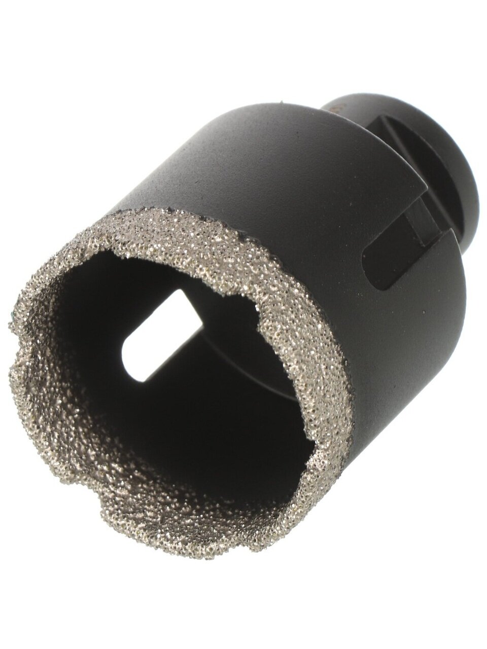 - Высокая точность реза: благодаря алмазному покрытию, коронка обеспечивает чистый и ровный рез, что особенно важно при работе с керамогранитом.