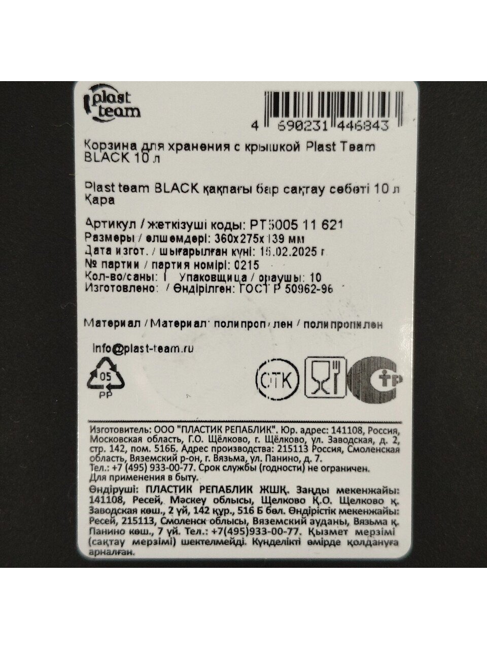 Вы можете приобрести «Корзина для хранения, 10 л, 36х27.5х13.9 см, плетеная, пластик, с крышкой, Plast team, Black, PT500511621» и другие товары в нашем интернет-магазине в Обнинске по низким ценам и с бесплатным самовывозом.