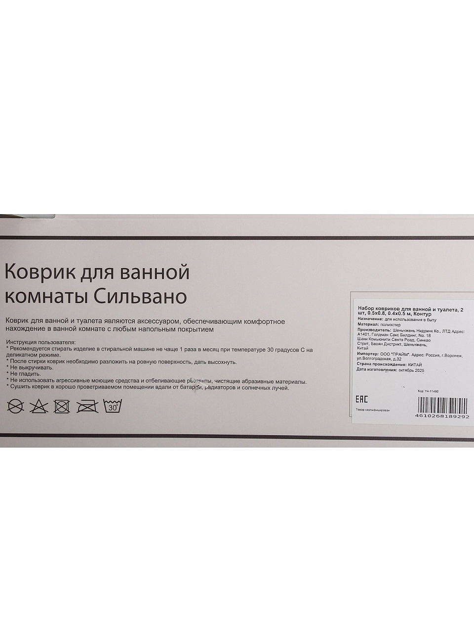В наборе используются коврики из полиэстера с резиновой основой. Это обеспечивает влаговпитывающие свойства и устойчивость на полу, а также простоту стирки и быструю сушку.